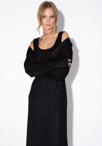 Платье женское из модной плательной ткани, свободного силуэта. Перед с нагрудными вытачками. По центру переда притачная деталь, на которой 8 вертикальных защипов. По спинке кокетка, по нижней части спинки бантовая складка. Рукав втачной, длинный. По окату рукава сборка, по низу рукава эластичная тесьма (резинка), для фиксации на руке. По горловине окантовка переходящая в застежку на петлю-пуговицу. По низу изделия притачной волан плиссе, а также рюша из основной ткани между верхней и нижней частями изделия. Платье без подкладки.