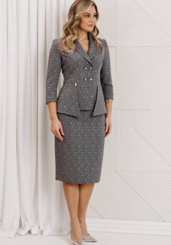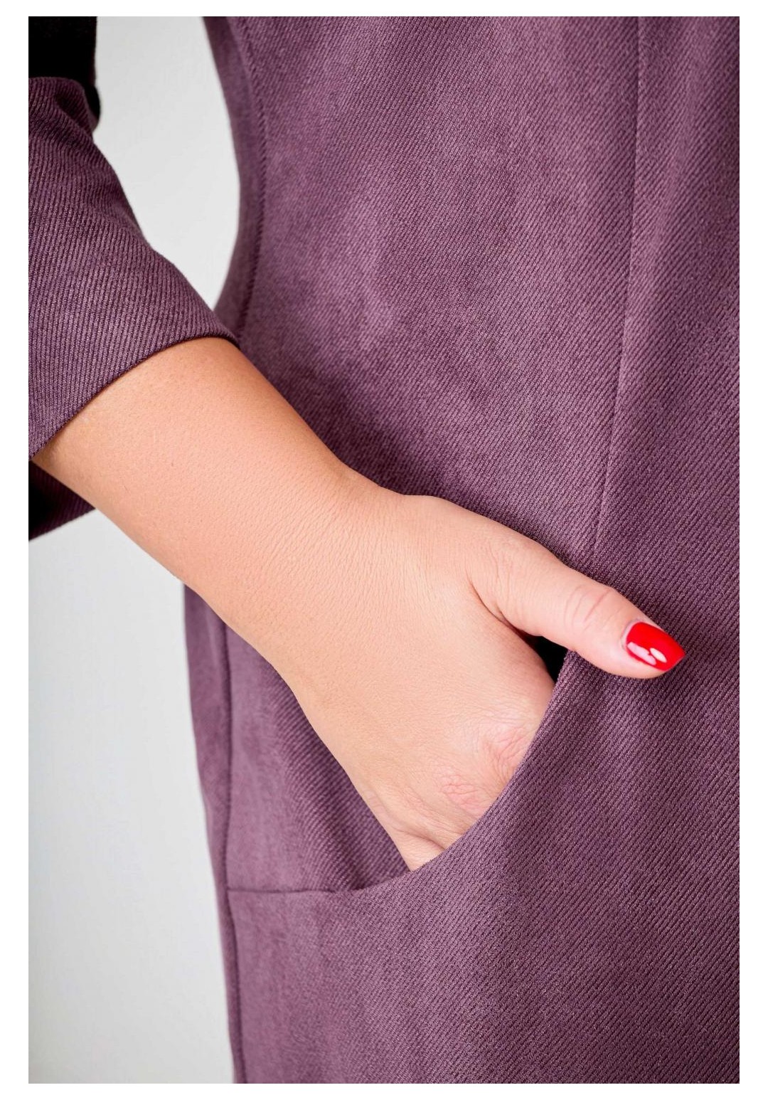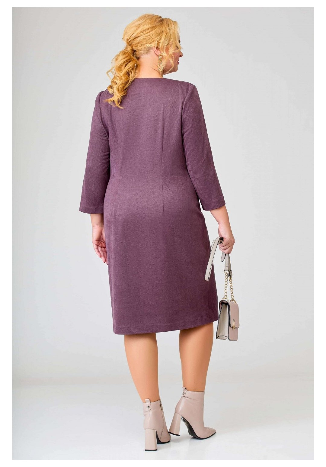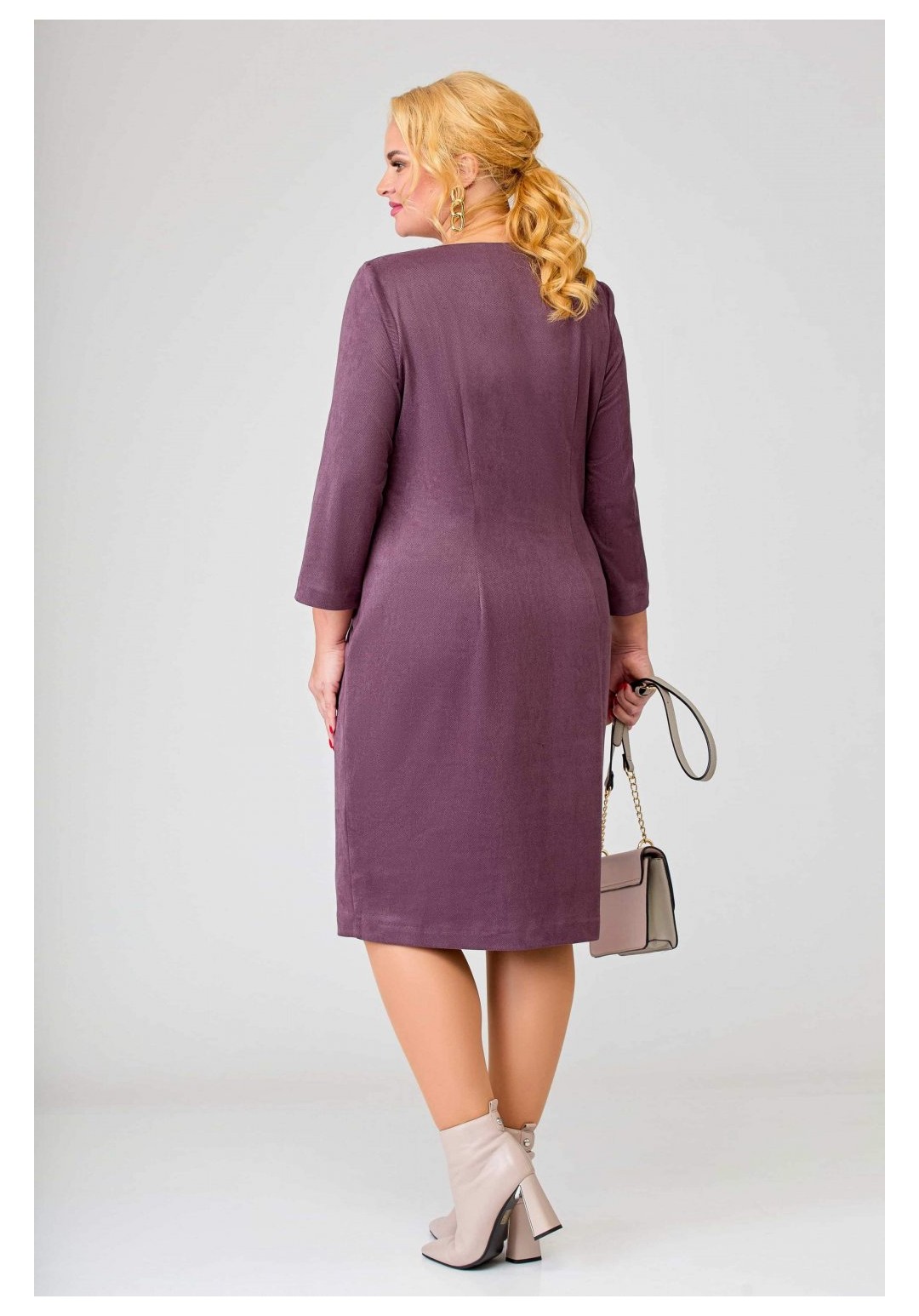 Платье женское полуприлегающего силуэта, выполнено из турецкого трикотажного полотна, с напылением. Горловина круглая, рукав втачной одношовный, длина рукава ¾. Перед с фигурными карманами, выходящими из рельефов. Спинка цельнокроеная, с талиевыми вытачками. Длина изделия по спинке в 52,54,56 размерах - 106 см (+/-1см). Длина изделия по спинке в 58,60,62 размерах - 108 см (+/-1см). Длина рукава 49см.