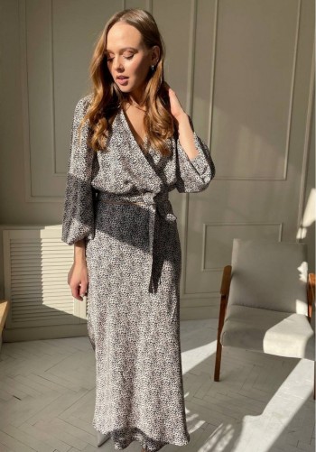Платье полуприлегающего силуэта из эластичной хлопковой ткани (тонкий деним). Горловина платья круглая. По переду платья расположены рельефные швы. Спинка с рельефными швами и средним швом, в который вставлена потайная молния. По низу спинки обработана шлица. Рукав короткий, втачной, одношовный. Длина платья 100 (+/-1) см. Длинна рукава 20,5 см В комплекте ремень шириной 3 см с декоративной пряжкой. В зависимости от партии ремень (пряжка) может меняться.