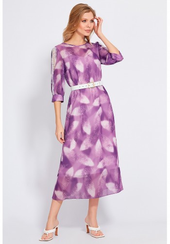 Платье прямого силуэта из эластичной хлопковой ткани. Платье отрезное по линии талии. Перед лифа со средним швом и разрезом с застёжкой по горловине на навесную петлю и декоративную пуговицу. Юбка со сборкой по линии талии и карманами в боковых швах. По низу юбки пришита фирменная эмблема SWАLLOW. Рукав цельнокроеный, отрезной по линии проймы, со сборкой по окату. Низ рукава собран на эластичную тесьму. Длина рукава в размерах 52-56 – 50 см; в размерах 58-62 – 52 см. Длина изделия по спинке 116 см