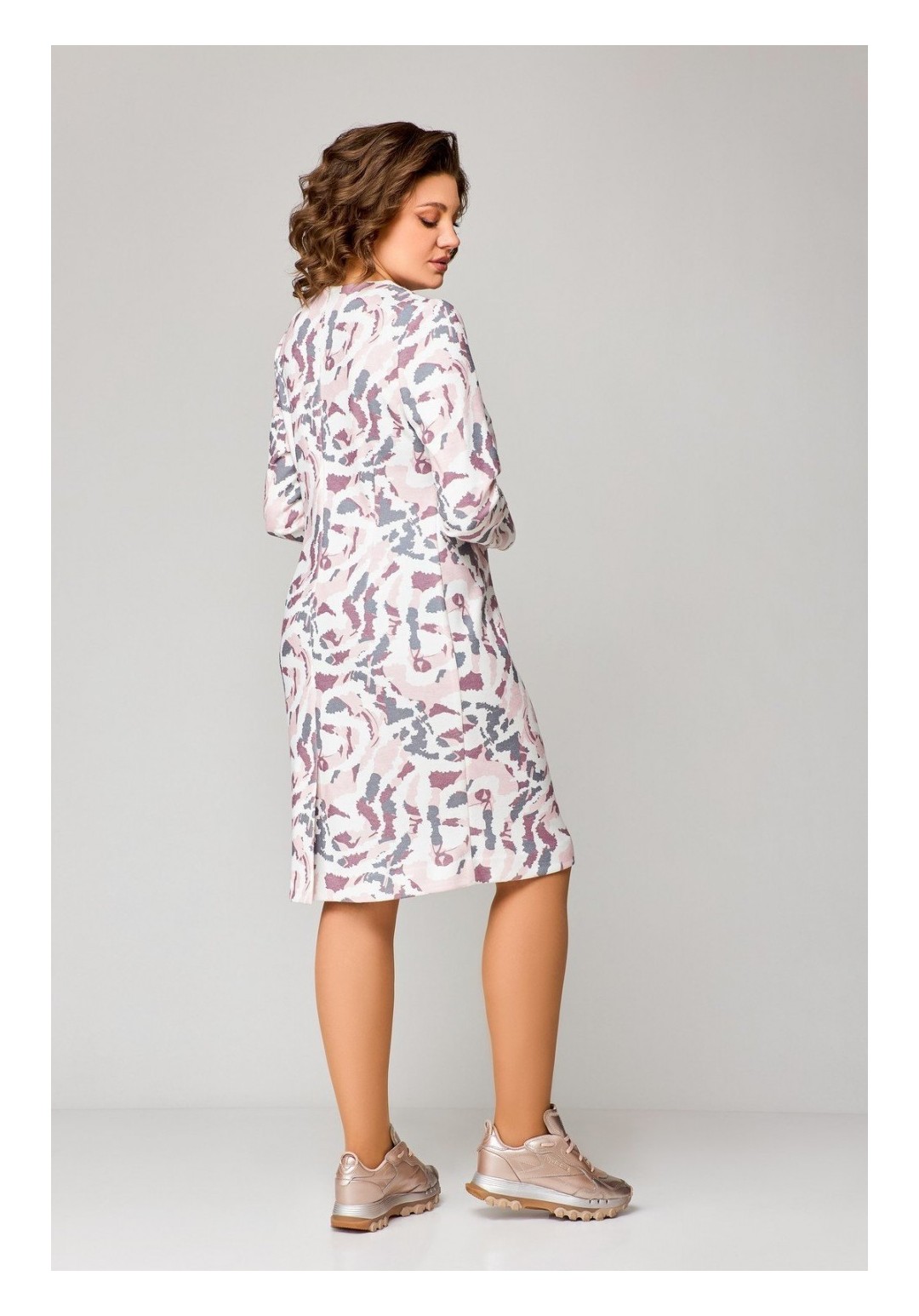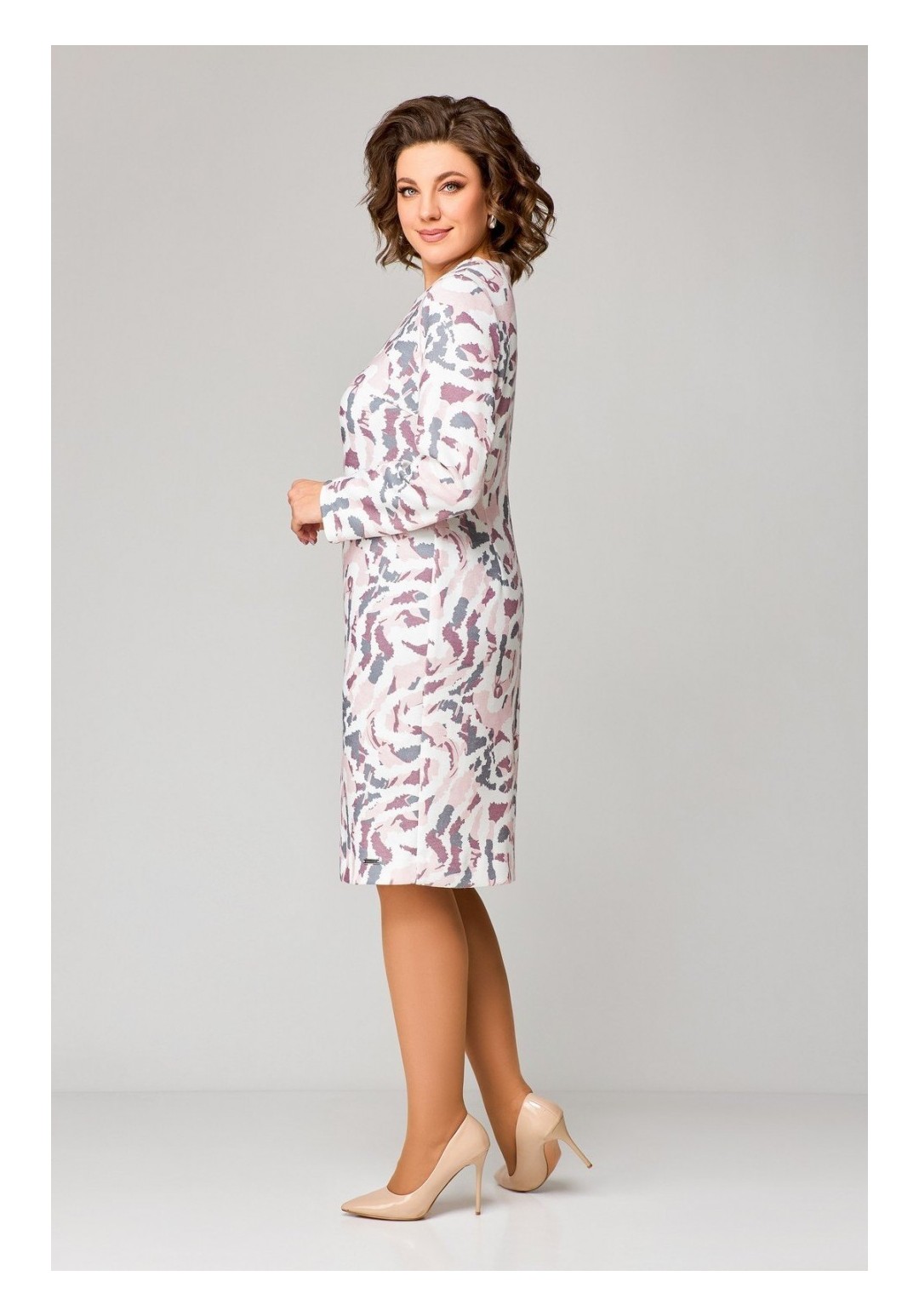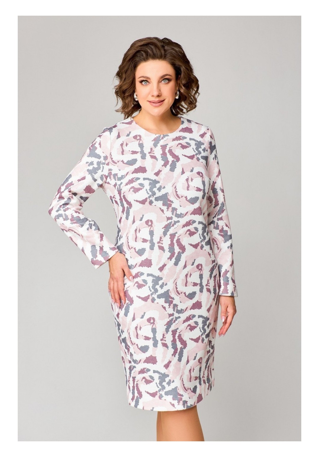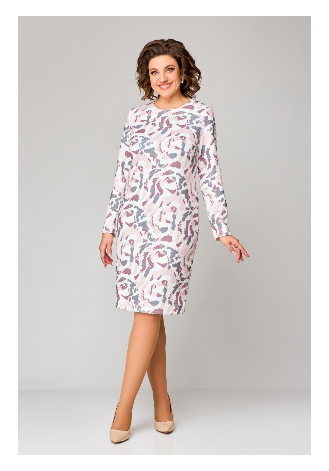 Платье из мягкого турецкого трикотажа полуприлегающего силуэта длиной до колена. Полочка с нагрудными вытачками, по спинке талиевые выточки, средний шов с застёжкой на потайную тесьму-молнию и шлица. Горловина округлая, рукав одношовный втачной, длинный. Длина платья по спинке – 98(+/-2 см) Длина рукава – 62 см.