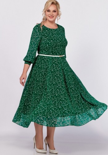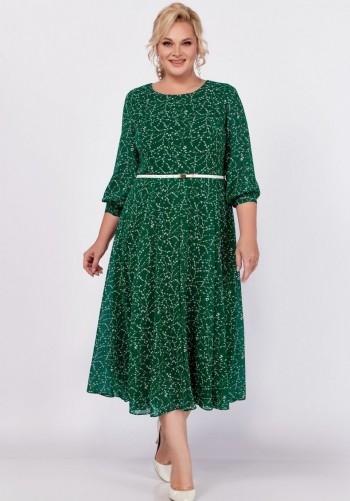 Платье полуприлегающего силуэта из мягкой поливискозной ткани с оригинальным дизайнерским принтом. По полочке выполнены рельефные швы, по спинке рельефные швы, средний шов со шлицей и застёжкой на потайную тесьму-молнию. Горловина круглая, обработана обтачкой. Рукав втачной, короткий. Длина платья по спинке – 101(+/-1) см. Длина рукава – 22(+/-1) см.