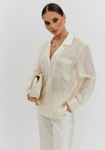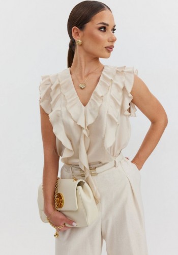 Ультра-женственное нарядное платье из легкой струящейся ткани. Втачной расширенный рукав, v-образный вырез горловины, втачной пояс по талии, вдоль лифа заложены складки. Юбка двойная, летящая. Застежка на потайную молнию в среднем шве спинки. Платье на подкладке.