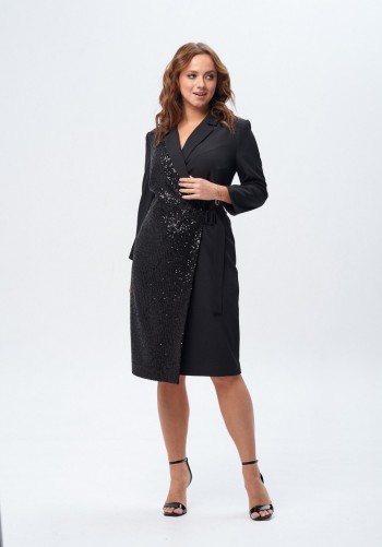 Платье А-силуэта с втачным рукавом из шифона. По низу платья пришит шифоновый волан. По спинке - застежка на молнию.