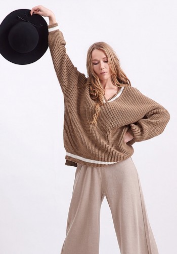 Платье женское полуприлегающего силуэта. По переду нагрудные вытачки и фигурные подрезы с отделочными строчками. Горловина круглая. По среднему шву спинки сверху застёжка потайная молния, снизу шлица с разрезом. Спинка с четырьмя талиевыми вытачками. В пройму рукава вставлены воланы заходящие друг на друга по окату. Платье без подкладки. Украшением платья служит декоративный цветок ручной работы.