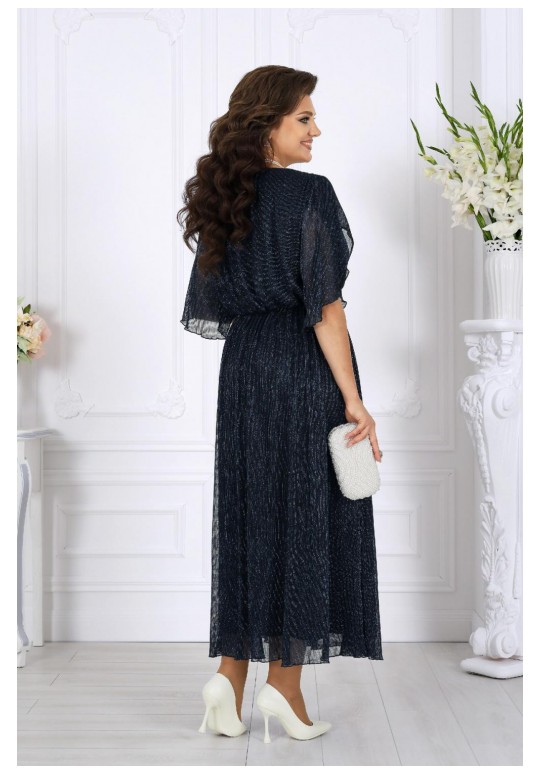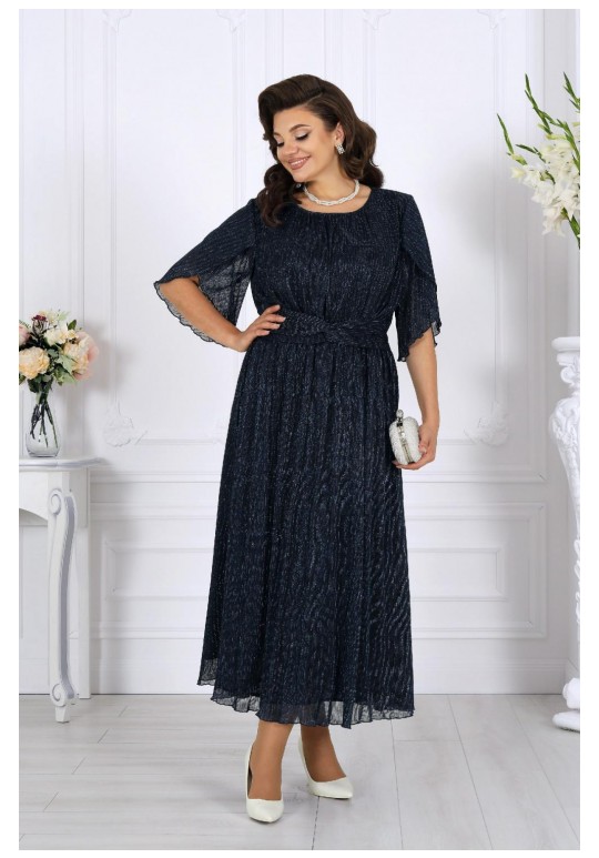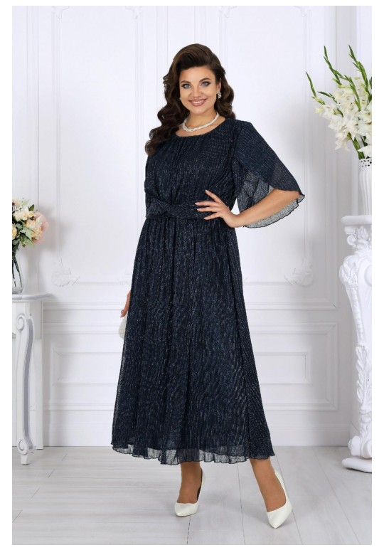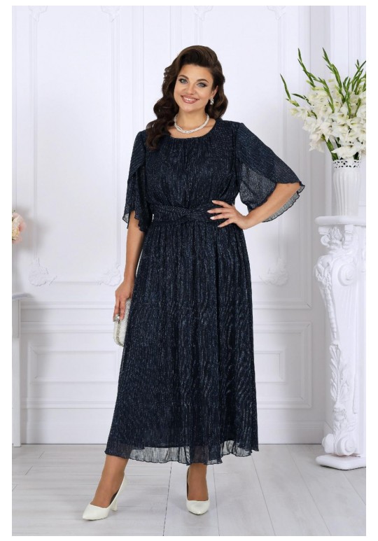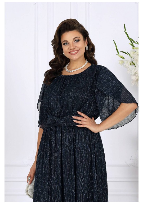Это изысканное платье приталенного силуэта выполнено из благородной сетки-гофре с мерцающим люрексом, придающим образу праздничное сияние. Трикотажная подкладка обеспечивает комфорт, а отсутствие застежек делает модель удобной и практичной. Драпированный пояс с элегантным перекрутом акцентирует линию талии и добавляет утонченности. Длина платья идеально подойдёт как для торжественных мероприятий, так и для особых случаев, подчеркивая ваш безупречный стиль. Это платье станет вашим незаменимым спутником на праздниках, вечеринках и романтических встречах. Платье женское, приталенного силуэта, выполнено из сетки-гофре с нитью люрекс. Модель на трикотажной подкладке, без застежки и плечевых накладок. Платье отрезное по линии талии, с полуприлегающим лифом и расширенной к низу юбкой; для лучшего прилегания в области талии на внутренний шов настрочена узкая эластичная лента. Перед дополнен задрапированным поясом с перекрутом, концы которого входят в боковые швы. По плечевым швам, горловине и подрезу талии – сборка. Горловина округлая, окантована узкой косой бейкой из основного материала. Рукав короткий, расширенный, с фигурным низом, переходящим в разрез, края которого по окату скреплены на запах. Длина платья (от горловины спинки) – 131 см, длина платья (от талии спинки) – 92 см; длина рукава – 30 см.