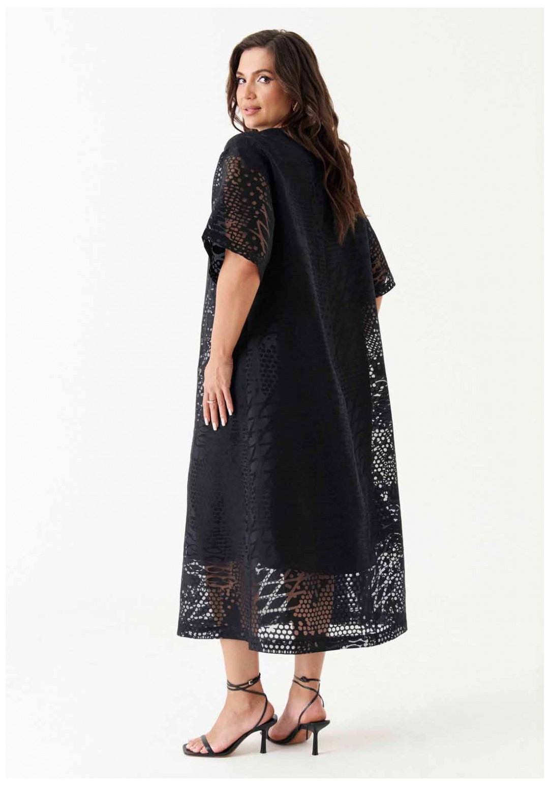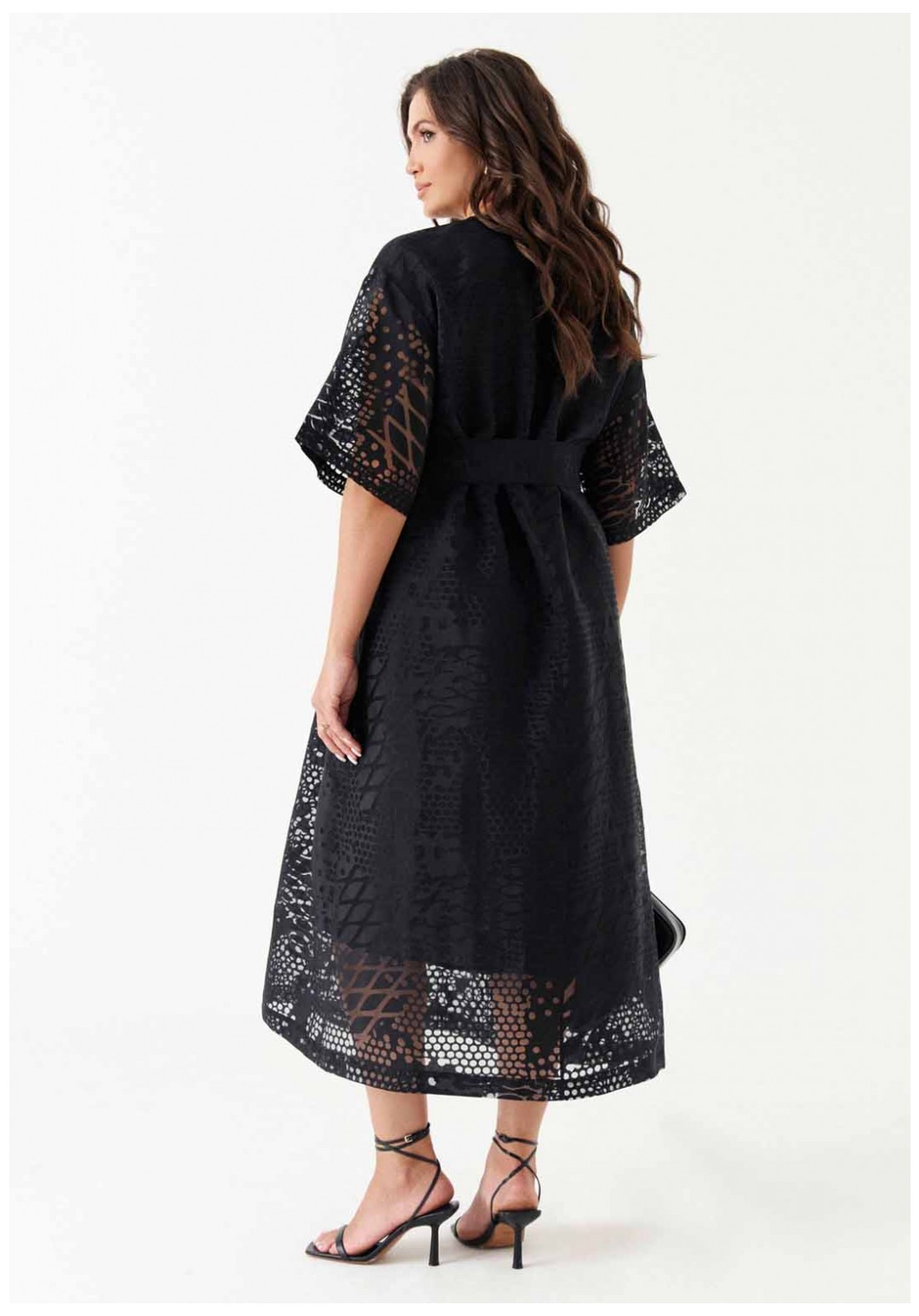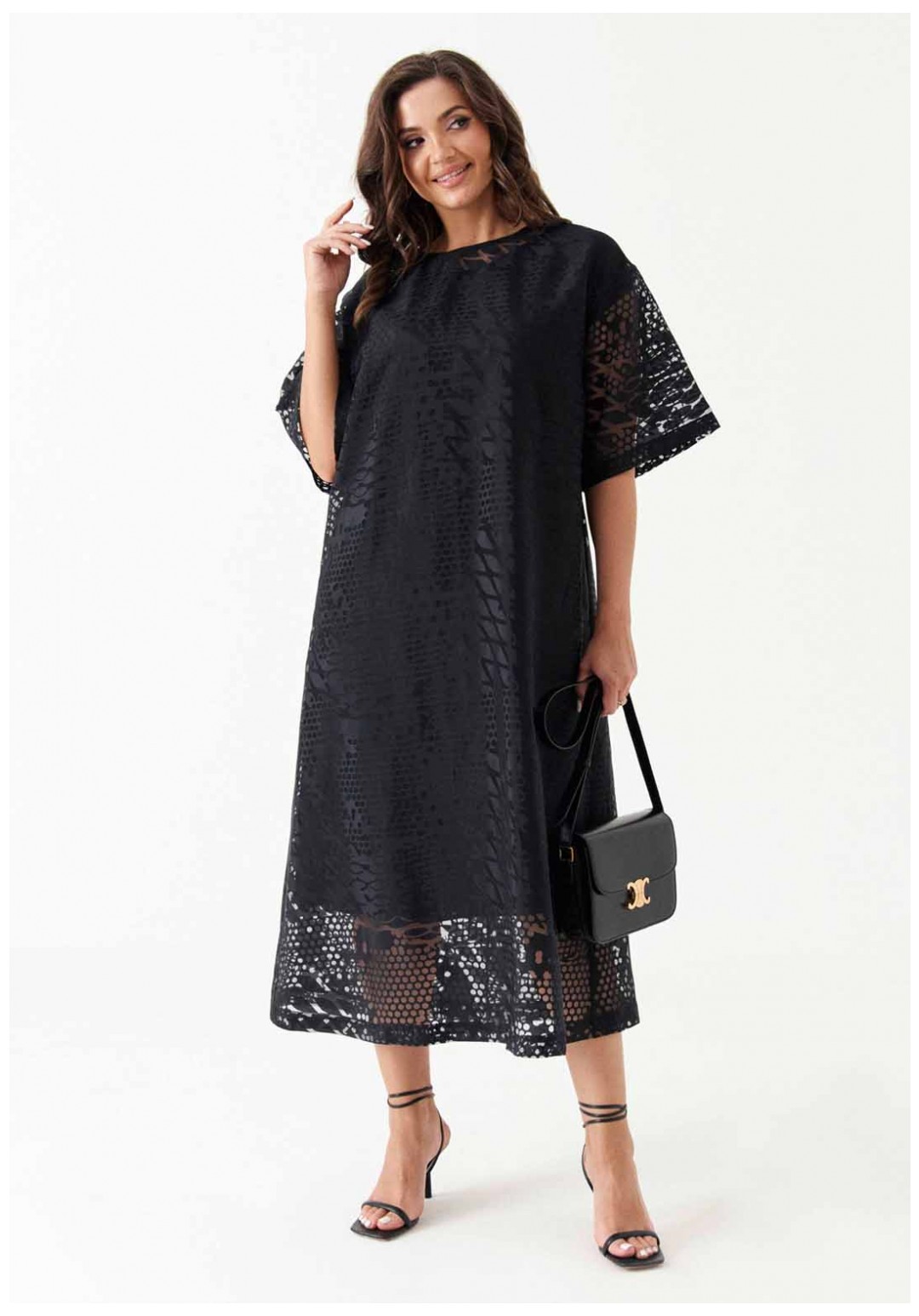 Платье расширенного силуэта с поясом из основной ткани подчёркивает женственность и создаёт лёгкий, романтичный образ. Спинка с разрезом и застёжкой-петлёй, а также слегка расширенная горловина добавляют модели элегантности. Короткие расширенные рукава и спущенная линия плеча придают платью игривость. Нижнее платье из вискозы обеспечивает комфорт, а платье в целом станет отличным выбором для различных мероприятий, будь то вечерняя встреча или торжественное событие.