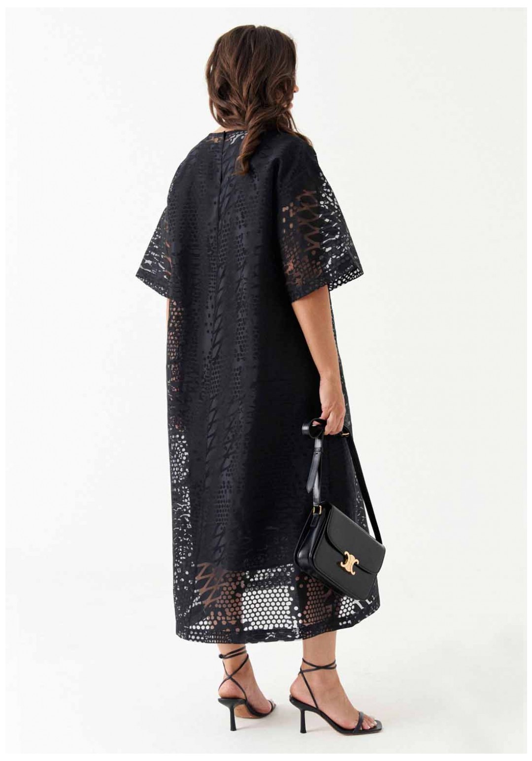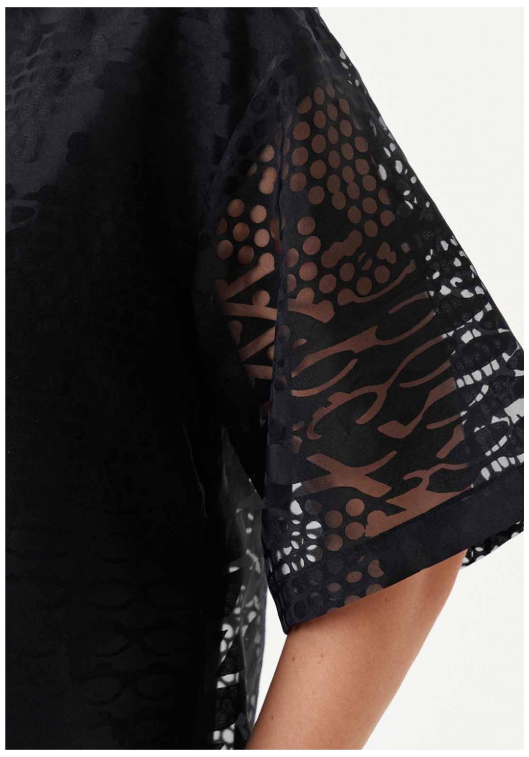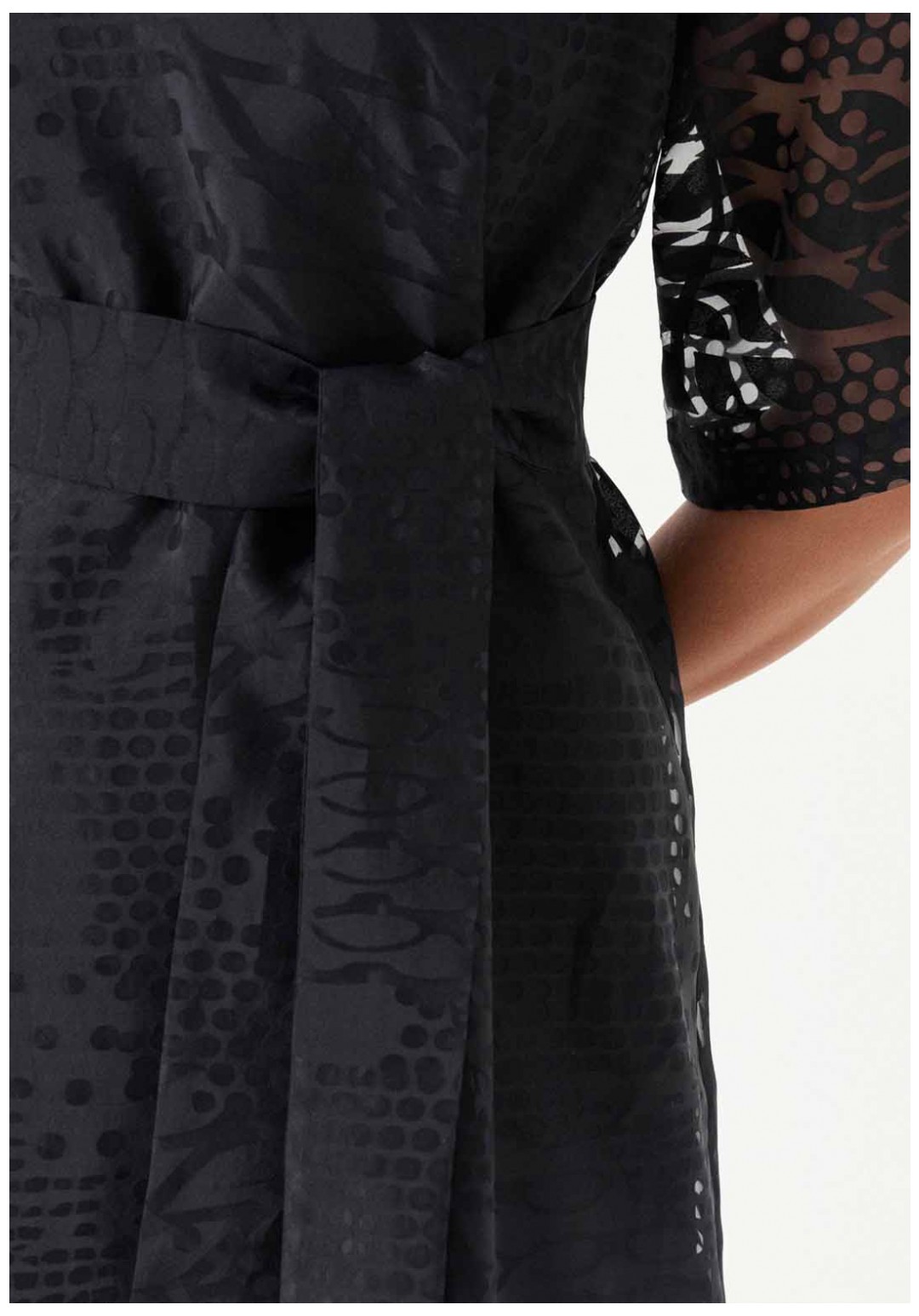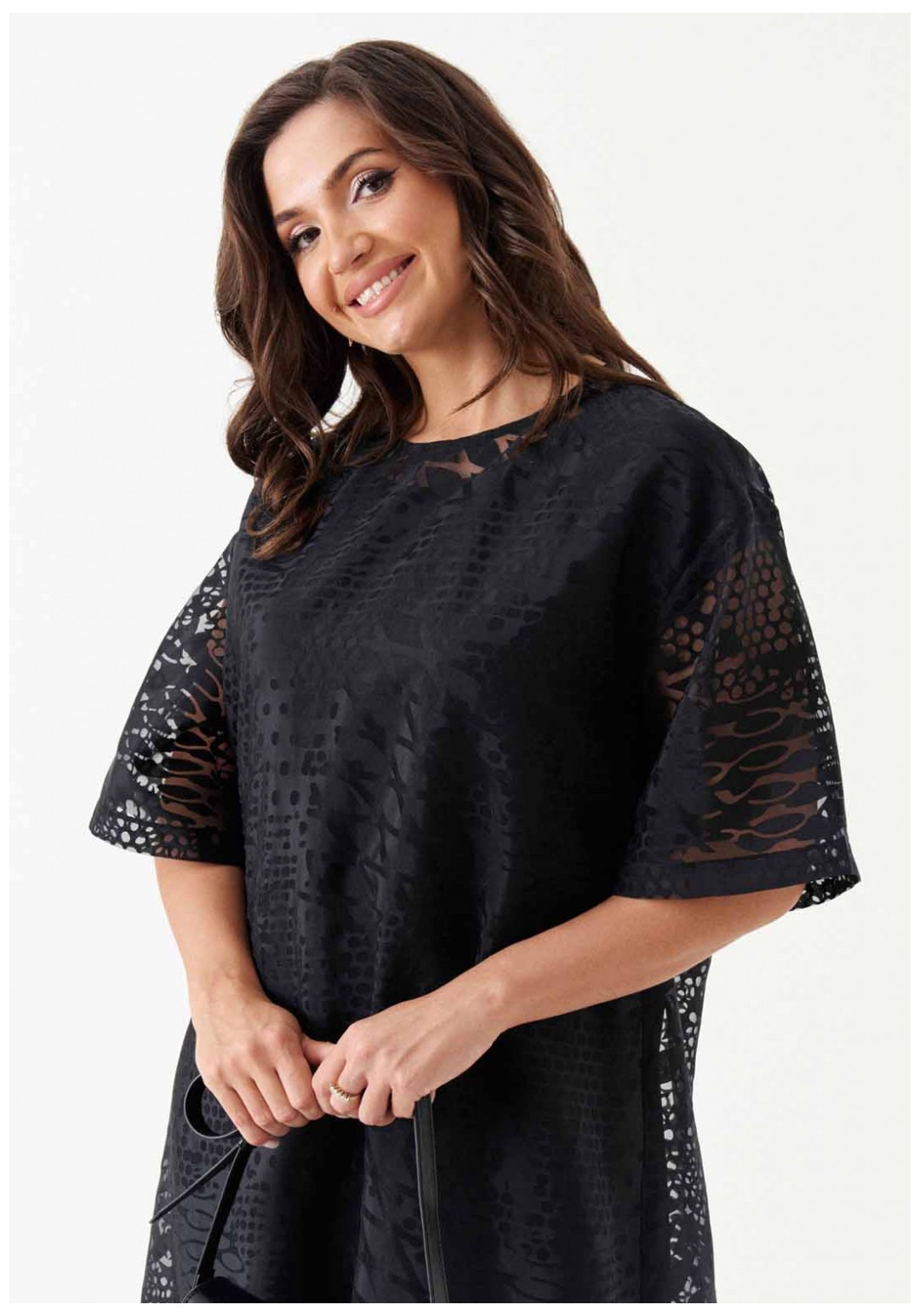 Платье расширенного силуэта с поясом из основной ткани подчёркивает женственность и создаёт лёгкий, романтичный образ. Спинка с разрезом и застёжкой-петлёй, а также слегка расширенная горловина добавляют модели элегантности. Короткие расширенные рукава и спущенная линия плеча придают платью игривость. Нижнее платье из вискозы обеспечивает комфорт, а платье в целом станет отличным выбором для различных мероприятий, будь то вечерняя встреча или торжественное событие.
