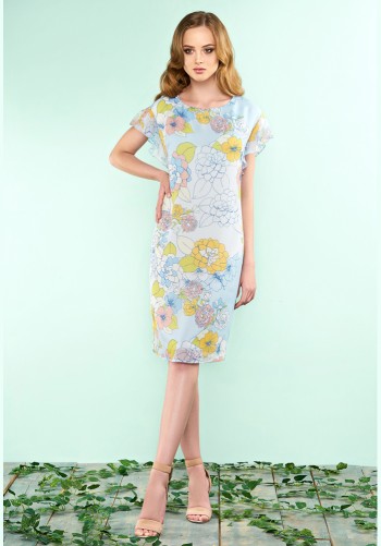 Изящное платье выполнено из плательной ткани, с добавлением нити люрекс, по бокам комфортные карманы. Низ платья и рукава выполнены из бархата, округлый вырез горловины.