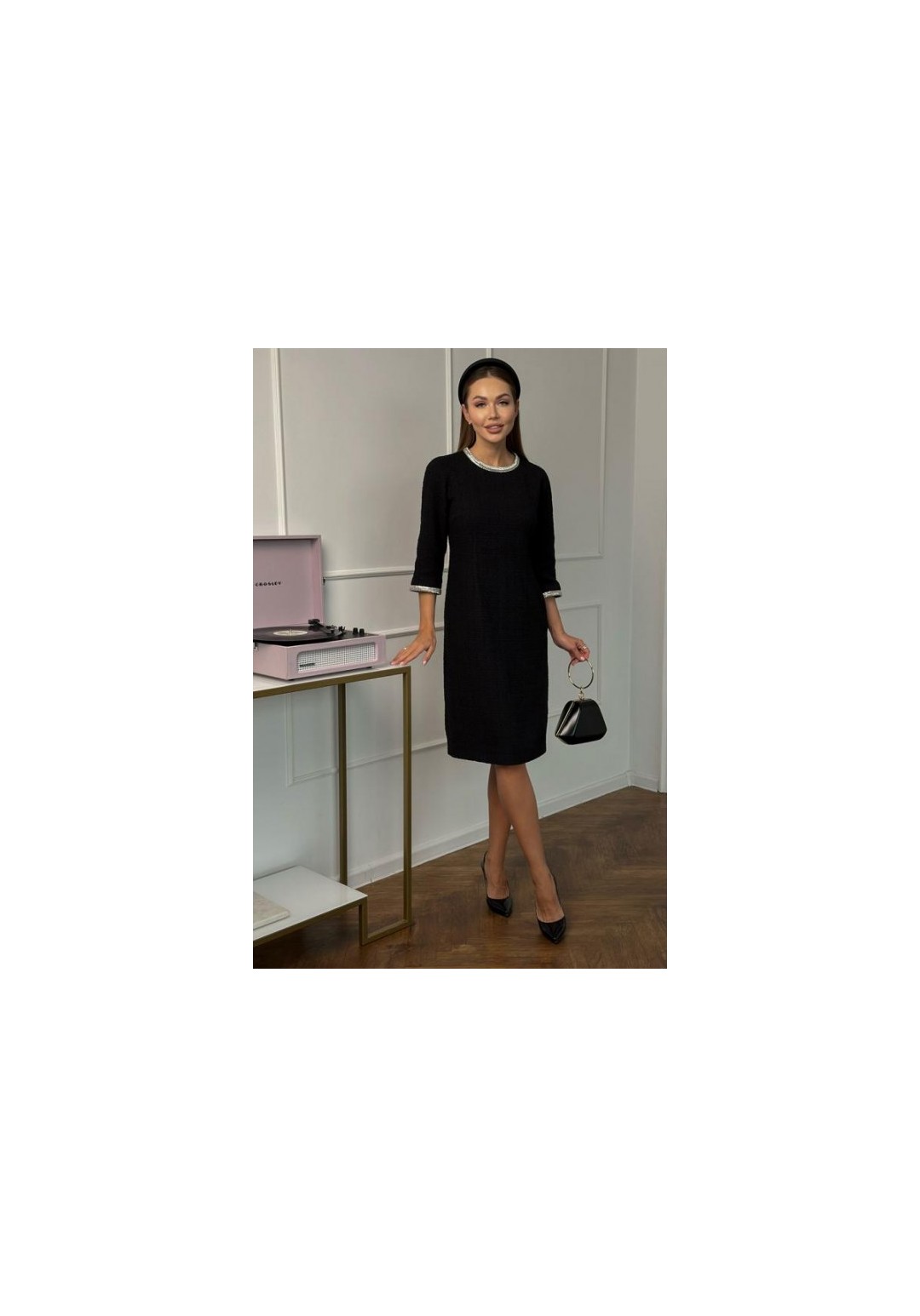 Создайте неповторимый образ с черным твидовым платьем, украшенным сверкающим стеклярусом! Это идеальный выбор для любого праздничного мероприятия. Выполненное из твидовой ткани с изысканной отделкой, это платье подчеркнет вашу элегантность и женственность. В этом платье вы будете звездой вечера! Платье женское, полуприлегающего силуэта, на подкладке, из твидовой текстурированной ткани, украшенное по горловине и низу рукава декоративной тесьмой из стекляруса (тесьма может незначительно отличаться от фото). Перед платья с талиевыми и нагрудными вытачками. Спинка платья с талиевыми вытачками и средним швом, в котором обработана застежка на потайную тесьму-молнию. Горловина круглой формы, обтачная, застегивается на пришивной потайной крючок. Рукава реглан, длиной ¾, идущие от горловины с верхним и нижним швами. Внимание!!! Вещи, расшитые камнями и бусинами, рекомендуется стирать вручную. Если использовать машинную стирку, то только при бережном режиме и температуре 30-35ºС, при минимальных оборотах отжима, выворачивая изделие на изнаночную сторону. В данном случае следует использовать специальную сеточку для стирки. Таким образом, больше вероятность, что украшение не испортят ткань либо не отваляться в процессе стирки. В качестве стирального порошка лучше использовать жидкие стиральные средства. Нежелательно использовать ополаскиватель для белья, так как украшения могут поменять цвет и потускнеть. Средняя длина платья по среднему шву - 102,0 см (±2,0 см). Средняя длина рукава от горловины - 58,0 см (±1,0 см).