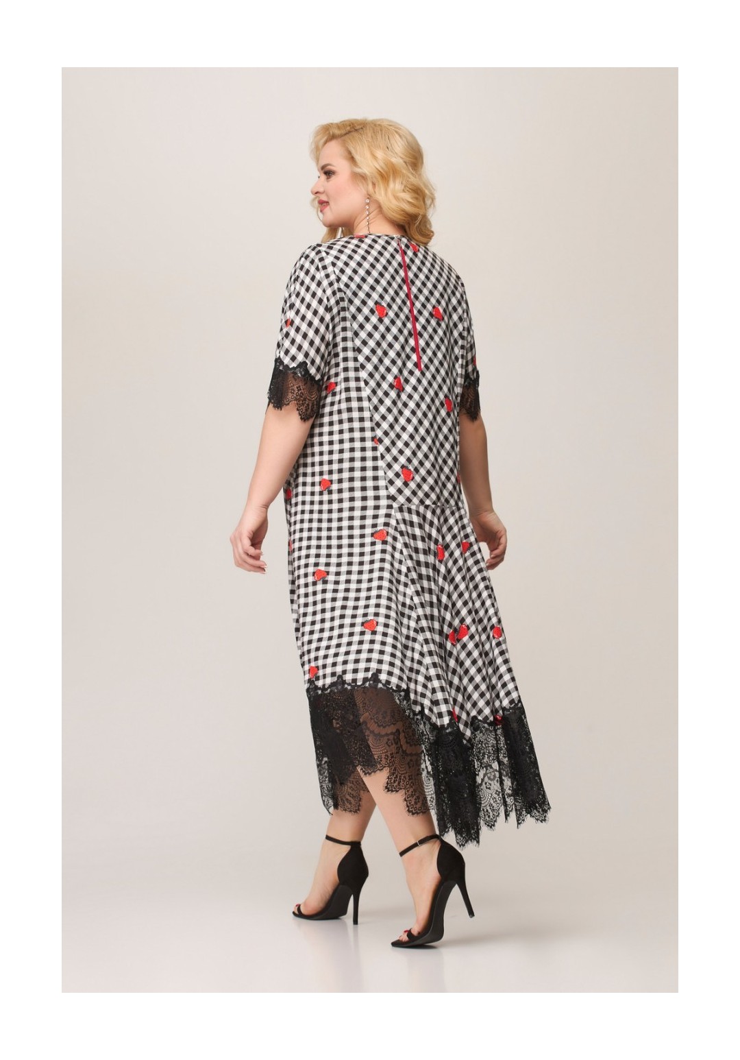 Платье женское в стиле бохо с цельнокроенным рукавом. По переду и спинке кокетка выкроенная по косой нити. От кокетки спереди встречная складка. По спинке застежка молния. Горловина круглая обработана косой бейкой. Низ рукавов и фигурный низ платья декорирован кружевом. В боковых швах обработаны карманы. Длина середины спинки 125 см Длина рукава от горловины 45 см