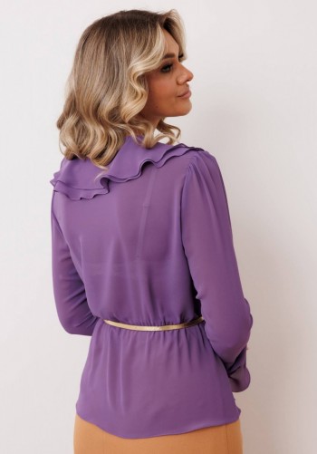 Двубортный жакет полуприлегающего силуэта из хлопковой ткани. По переду обработаны прорезные карманы с листочкой и клапанами. Отложной воротник с лацканами, скошена линия борта к низу жакета. Рукав втачной длинный с небольшой сборкой по окату.