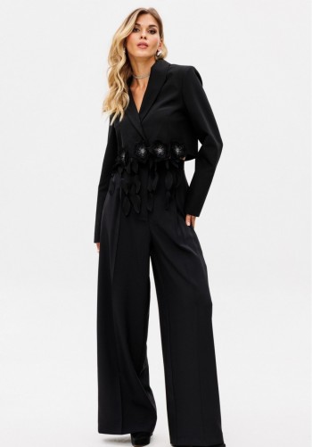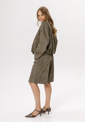 Жакет выполнен из костюмной ткани. Жакет О-образного силуэта, длиной до линии бедер. По переду обработаны рельефы от плечевого шва до низа, прорезные карманы с клапанами, и центральная бортовая застежка на 4 петли и пуговицы. Низ борта округлой формы. На спинке обработаны два рельефа от горловины до низа и средний шов. Горловина округлой формы, обработана цельнокроеным воротником-стойкой. Плечевой шов удлинен. Рукав фигурной формы, двухшовный, заужен к низу. Жакет с плечевыми накладками. Жакет на притачной по низу подкладке. Длина жакета - 65 см. Длина рукава от горовины - 85 см. ЖАКЕТ м. 3061 44 46 48 Длина по центру спинки 65 65 65 Длина рукава 85 85 85 Объем по груди 98 102 106 Объем по талии 81 85 89 Объем по низу 116 120 124 Объем рукава вверху 50 52 54 Объем рукава внизу 28 28 28