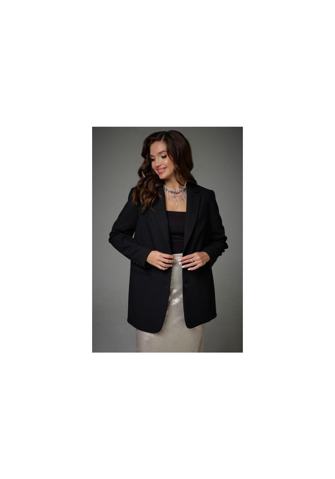 Жакет прямого силуэта на подкладке. Перед с декоративными вытачками и функциональными карманами в рамку. Воротник пиджачного типа. Застежка центральная бортовая застегивающаяся на 2 декоративных пуговицы, край борта закруглен. Рукав длинный втачной со шлицей и с 4-мя декоративными пуговицами.