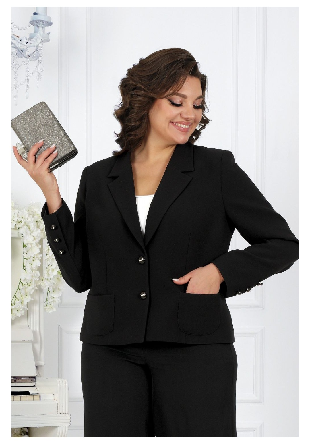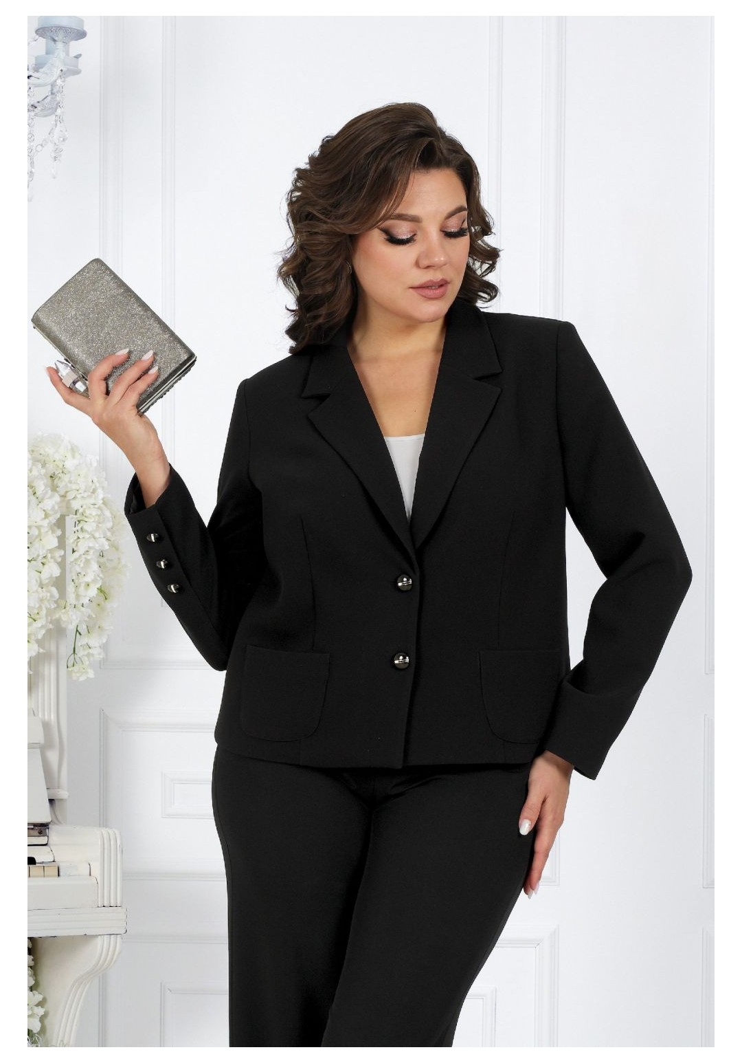 Укороченный пиджак — это не просто модный тренд, это выражение вашего индивидуального стиля. Он подчеркивает формы, создавая элегантный силуэт и подчеркивая вашу женственность. Натуральная ткань обеспечивает приятное ощущение на коже, а подкладка придает пиджаку структуру и уверенность. Этот укороченный пиджак предлагает стильное решение для повседневного образа, а также является идеальным выбором для создания элегантных комплектов на особые случаи. Жакет полуприлегающего силуэта, из костюмной ткани, с центральной бортовой застежкой на 2 петли и 2 пуговицы, с воротником пиджачного типа. Длина жакета по среднему шву спинки для размеров р.46-52 - 57 см; для размеров р.54-62 – 60 см, от шва втачивания воротника в горловину. Перед с нагрудной вытачкой уходящей к низу жакета. В нижней части переда расположены накладные карманы закруглённой формы. Спинка со средним швом, в нижней части которого расположена щлица. Рукава втачные, двухшовные. По низу рукава в локтевом шве обработана имитация шлицы с 3-мя пуговицами. Длина рукавов 59 см. Жакет на подкладке, с плечевыми накладками.