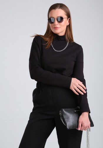 Жакет второго слоя одежды, прямого силуэта с длинным рубашечным рукавом и накладным карманом. Край борта регулярный, концы стачены, росток окантован. Застежка центральная на петли и пуговицы на ножке под покраску в цвет изделия.