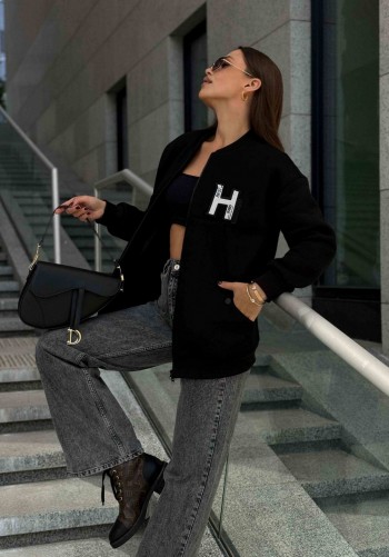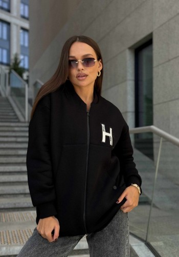 Жакет женский второго слоя одежды, прямого силуэта, с удлиненной линией плеча и длинным втачным рукавом. Перед с цельнокроеным подбортом и карманами в боковых швах. Спинка цельная. Низ стана и рукавов заработаны сдв. кул. гладью. На переде возле кармана металическое и декоративное украшение.