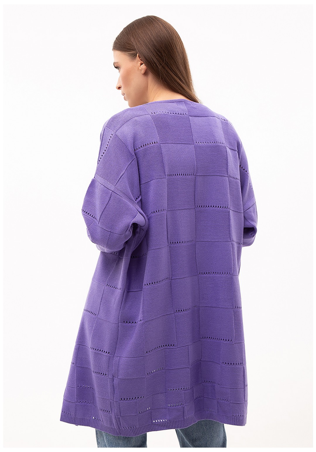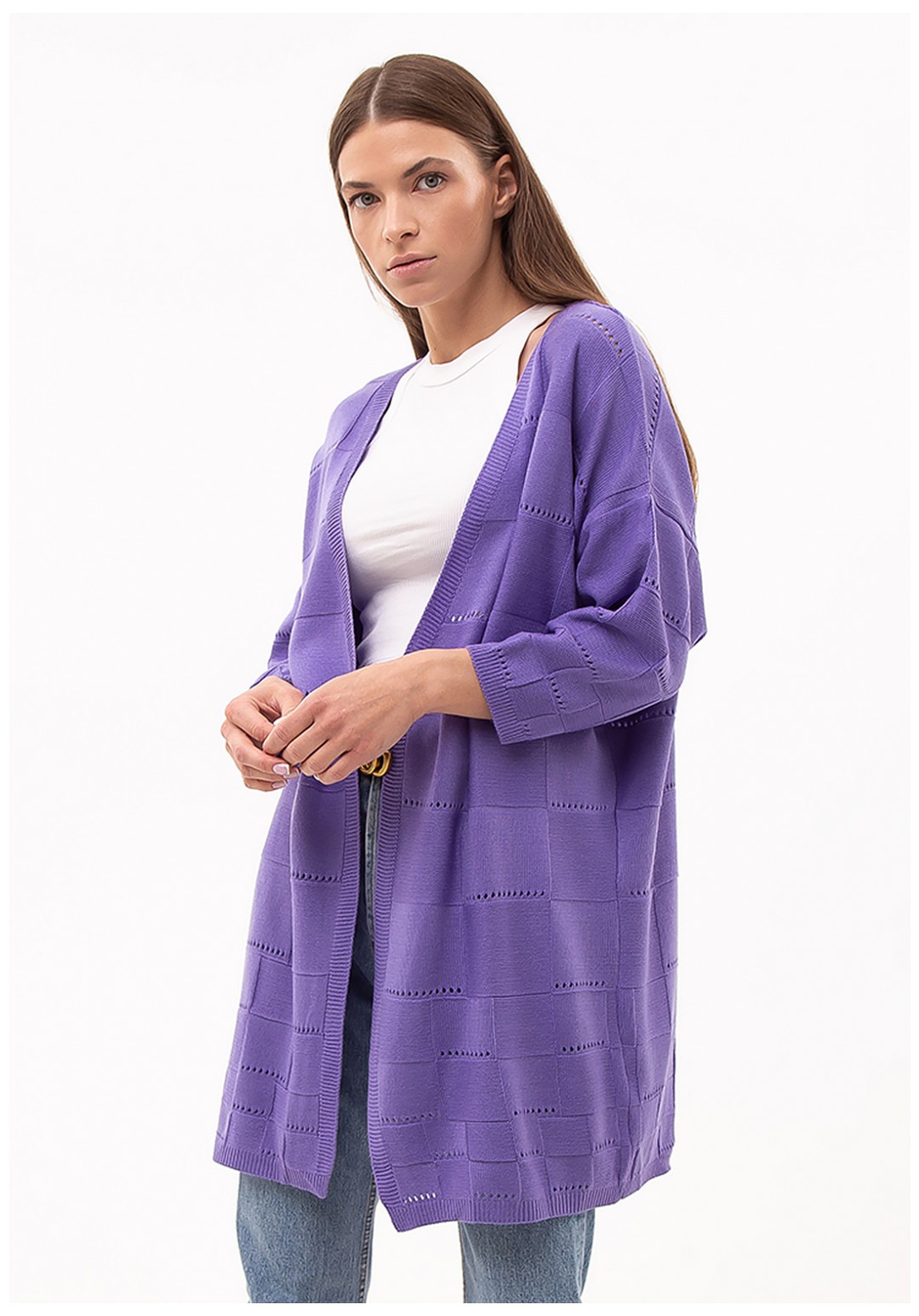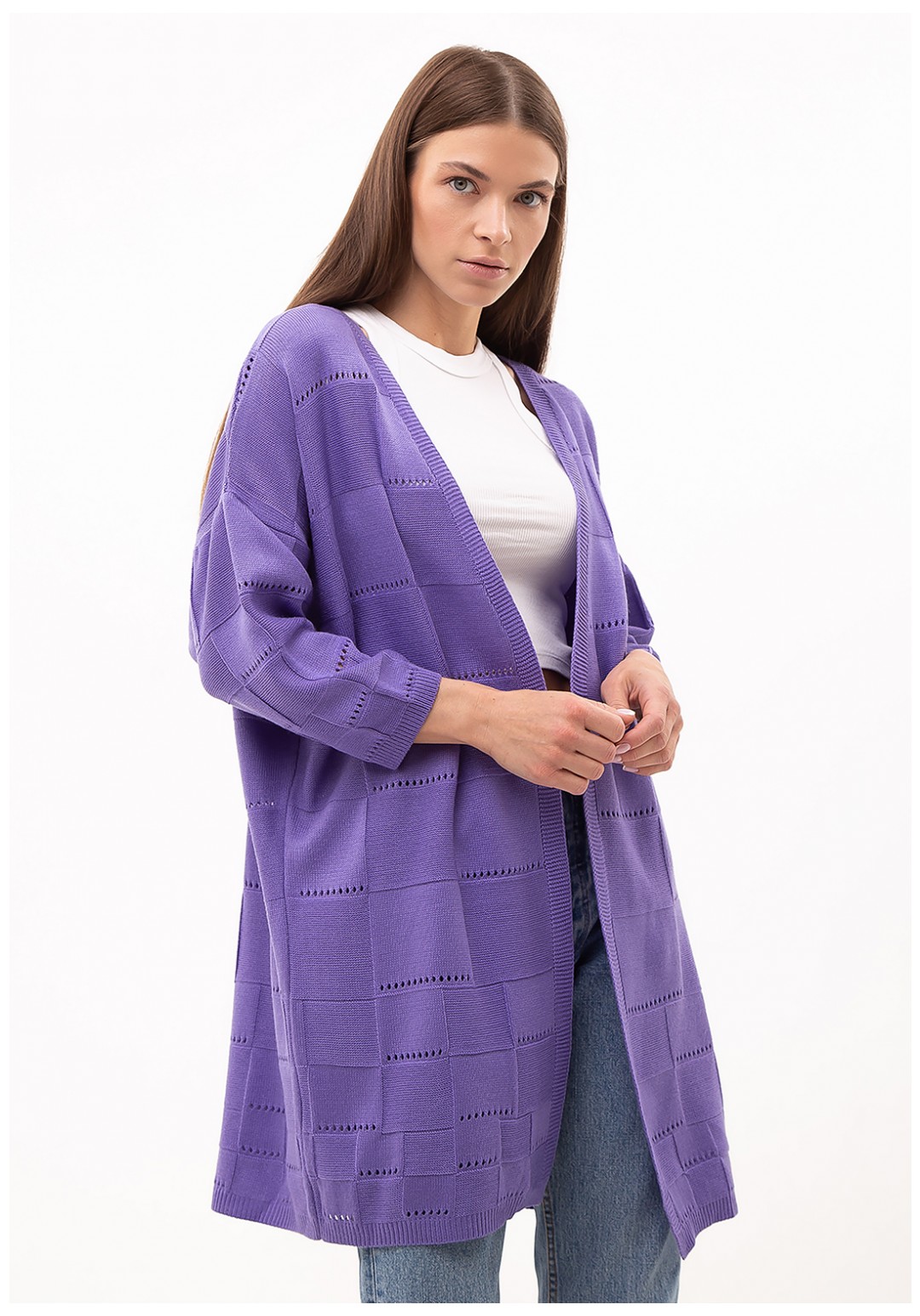 Классический универсальнаый женский кардиган прямого силуэта с интересным узором в квадраты, выполнен из мягкой, плотной, уютной хлопковой пряжи. В нашем кардигане Вы будете чувствовать себя комфортно и защищенно. К тому же кардиганы Romgil, как отличные базовые элементы гардероба, легко сочетается в повседневном, офисном, вечернем и классическом стиле. Носи с классическими брюками, брюками палаццо, джинсами, юбками-плиссе и шортами. Идеально подходит для повседневной носки. Приятный к телу и легкий в уходе, после стирки - не линяет, не изменяет форму.