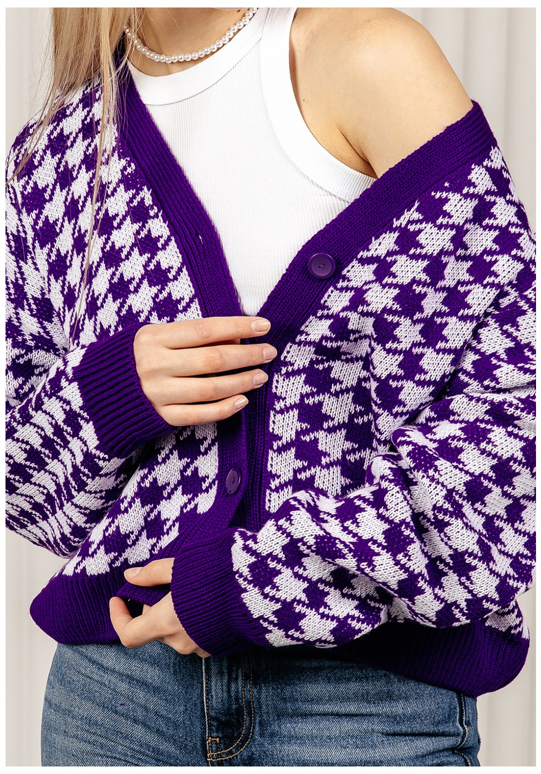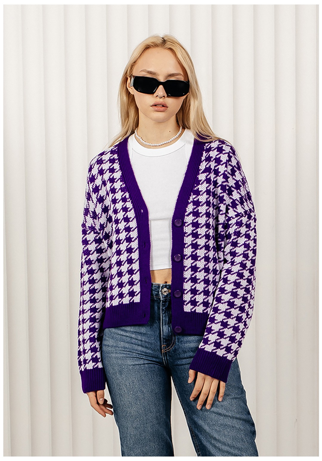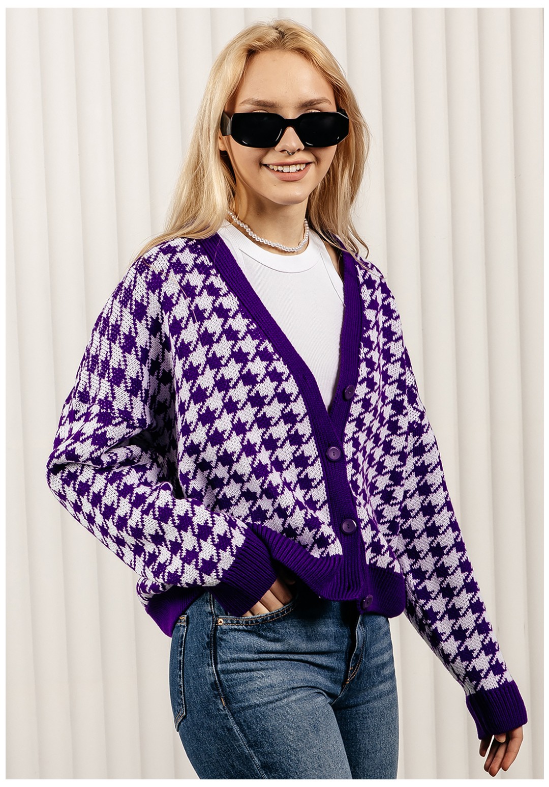 Кардиган женский вязаный в гусиную лапку. Кардиган выполнен из высококачественной пряжи, что делает его мягким и приятным к телу. Дизайн позволяет его носить как с классическими, так и повседневными нарядами, данная модель идеально впишется в любой гардероб. А цветовые решения украсят ваше настроение. В нем вы будете выглядеть элегантно и стильно на работе, на встрече и отдыхе, а также в любом другом месте. Трикотажный укороченный кардиган согреет Вас в прохладную погоду и определенно станет любимой вещью в гардеробе. Кардигану не требуется особого ухода. Важная информация! Фото товара сделано при искусственном освещении студии. При естественном освещении цвета могут иметь другие оттенки. Сушите изделие горизонтально, разложив на полу или горизонтальной поверхности.