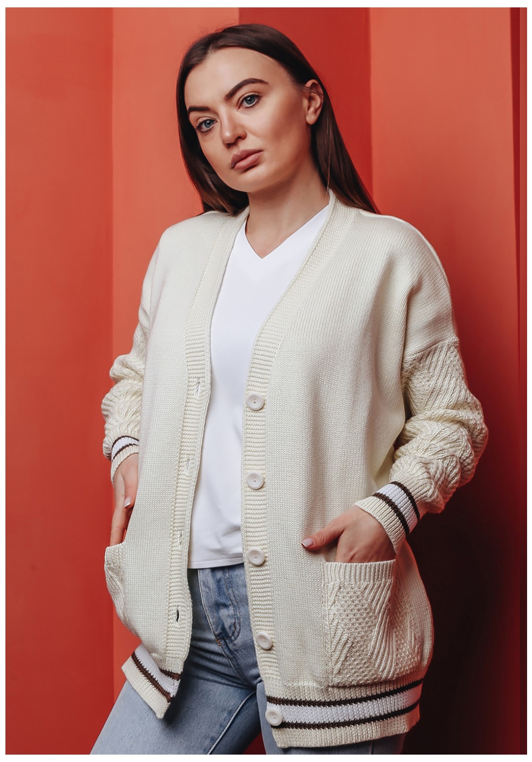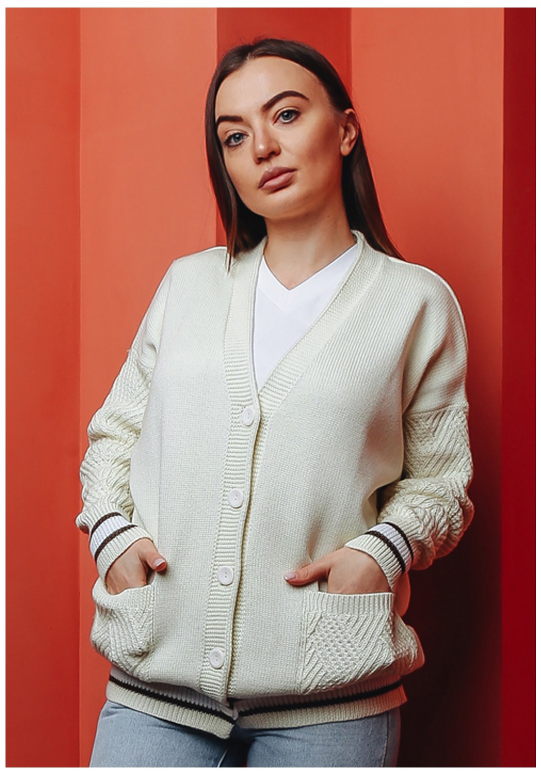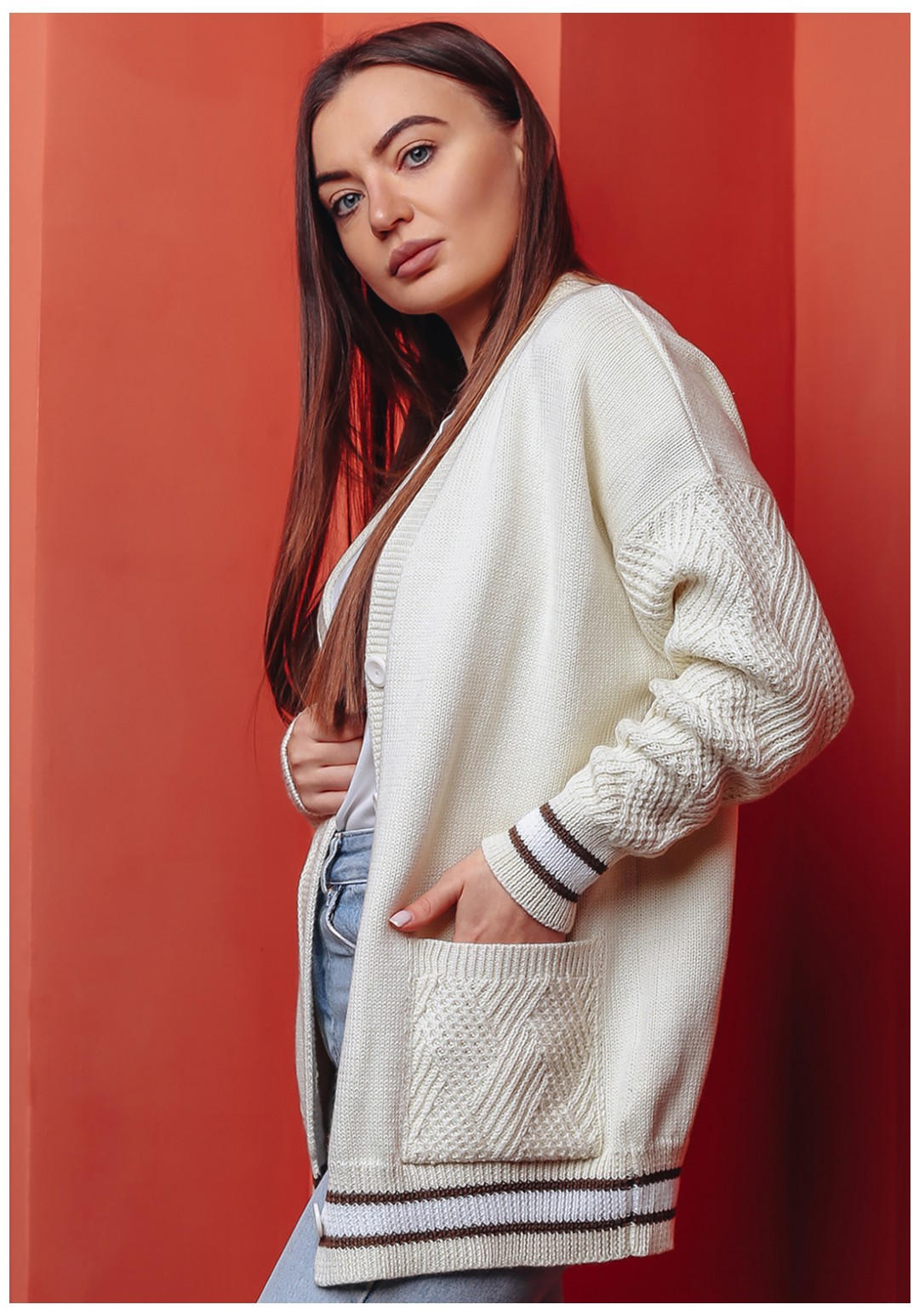 Стильный женский кардиган на пуговицах тренд сезона весна 2022 изготовлен из высококачественой хлопковой пряжи, не теряет форму в течение долговременной носки. Удлиненный кардиган прямого кроя прекрасно смотрится на всех типах фигур и является неотъемлемой частью гардероба. Имеет V-образный вырез и длинные прямые рукава. Сочетается как с женственными платьями, так и с джинсами. Яркий цвет кардигана подчеркивает индивидуальность. Ажурные карманы придадут пикантности вашему образу. Важная информация! Фото товара сделано при искусственном освещении студии. При естественном освещении цвета могут иметь другие оттенки. Сушите изделие горизонтально, разложив на полу или горизонтальной поверхности.