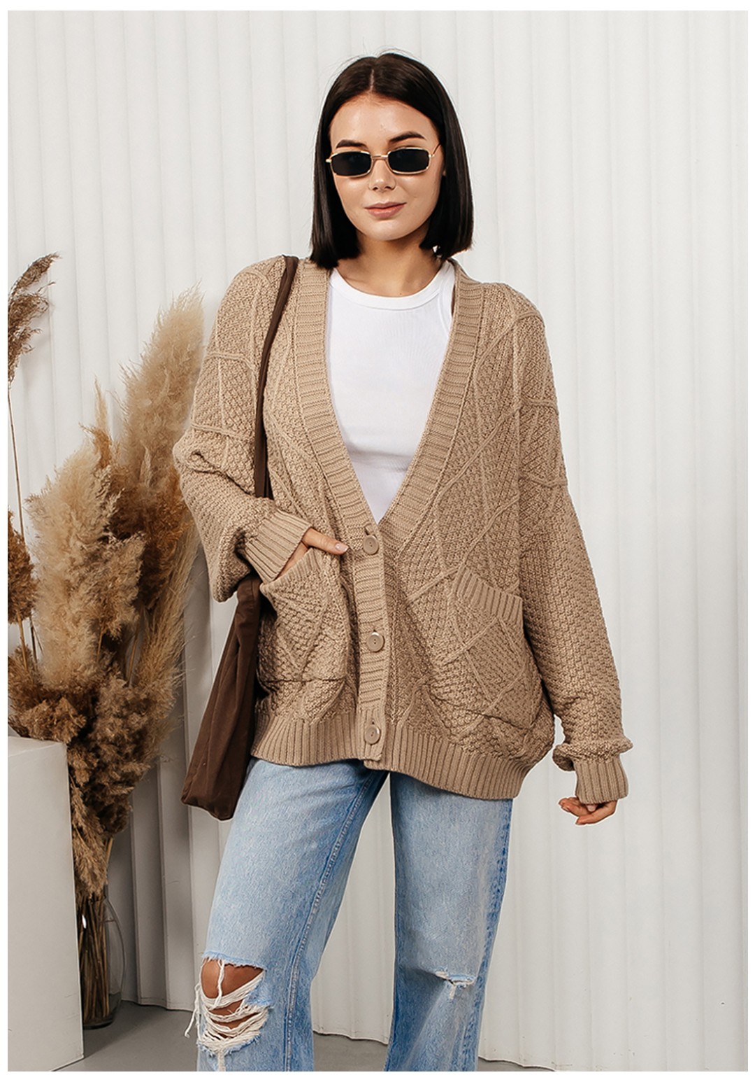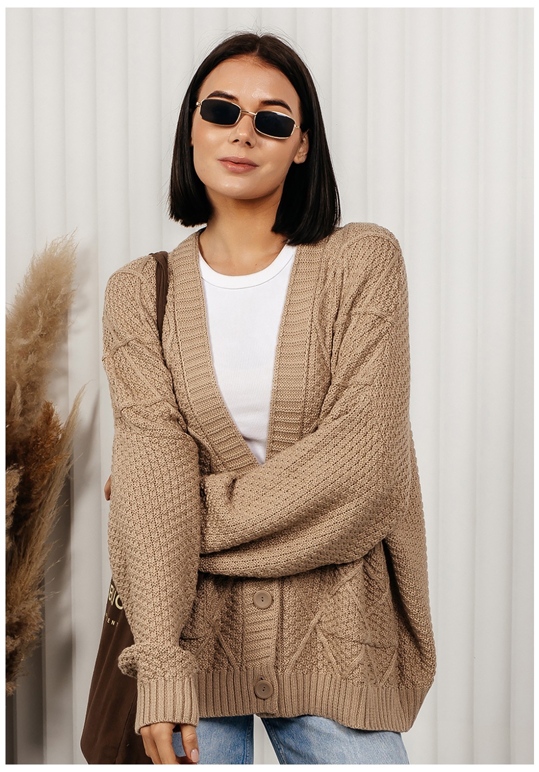 Стильный женский кардиган на пуговицах тренд сезона весна 2022 изготовлен из высококачественной хлопковой пряжи, не теряет форму в течение долговременной носки. Кардиган прямого кроя прекрасно смотрится на всех типах фигур и является неотъемлемой частью гардероба. Имеет V-образный вырез и длинные прямые рукава. Сочетается как с женственными платьями, так и с джинсами. Важная информация! Фото товара сделано при искусственном освещении студии. При естественном освещении цвета могут иметь другие оттенки. Сушите изделие горизонтально, разложив на полу или горизонтальной поверхности.