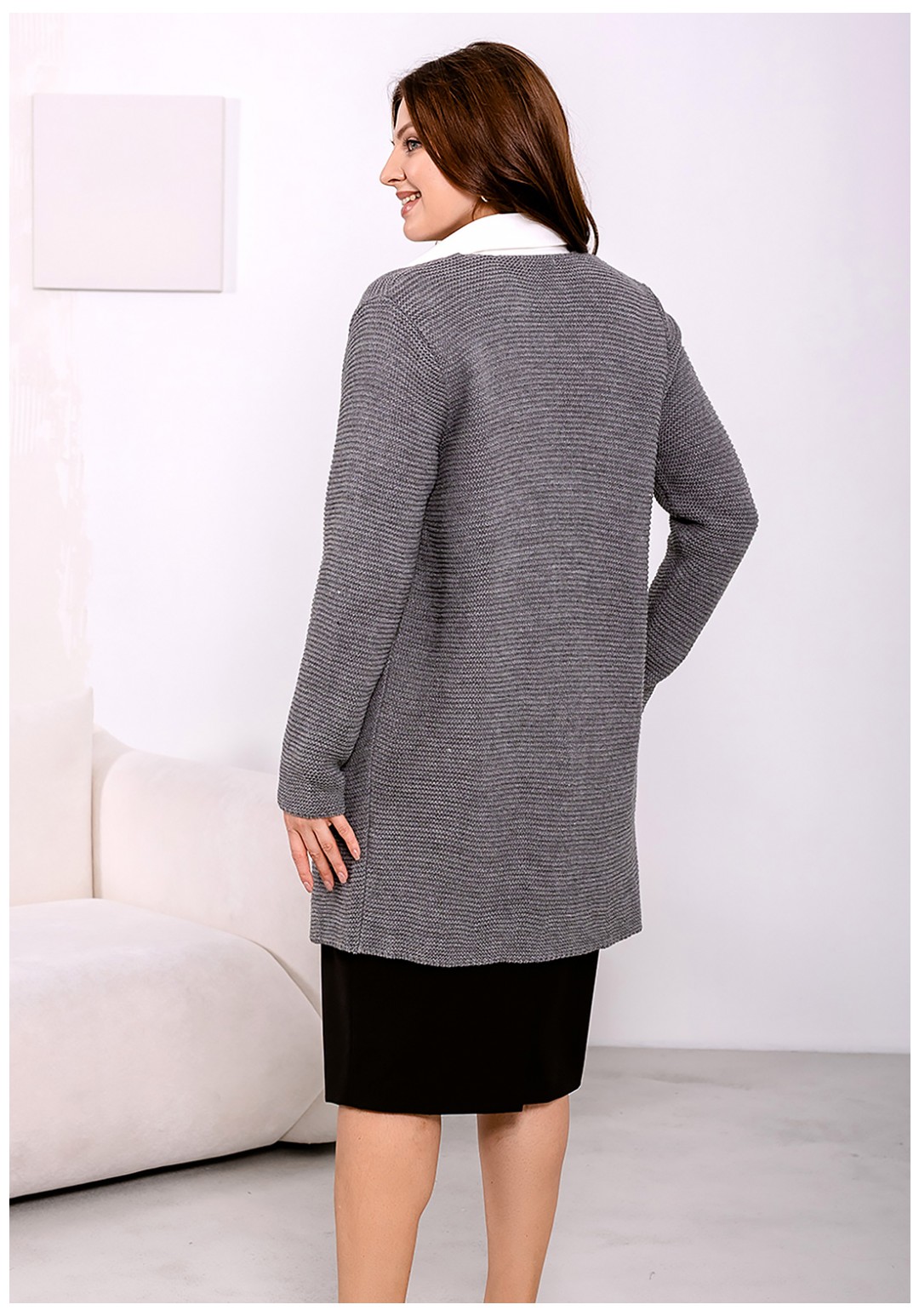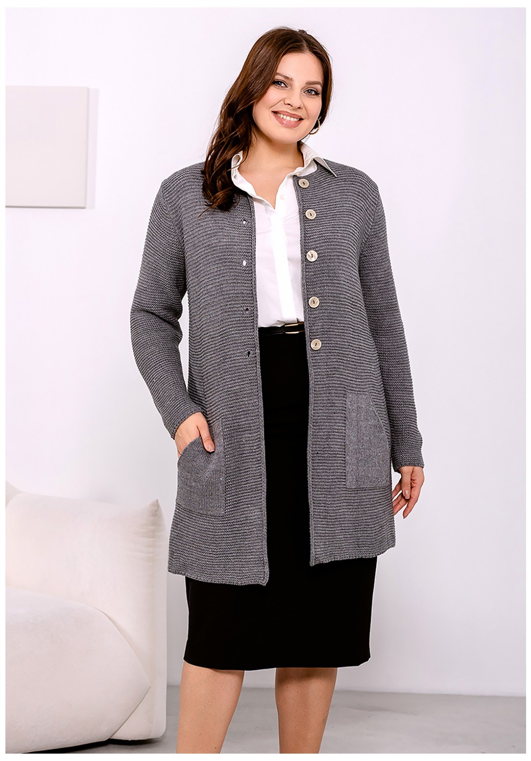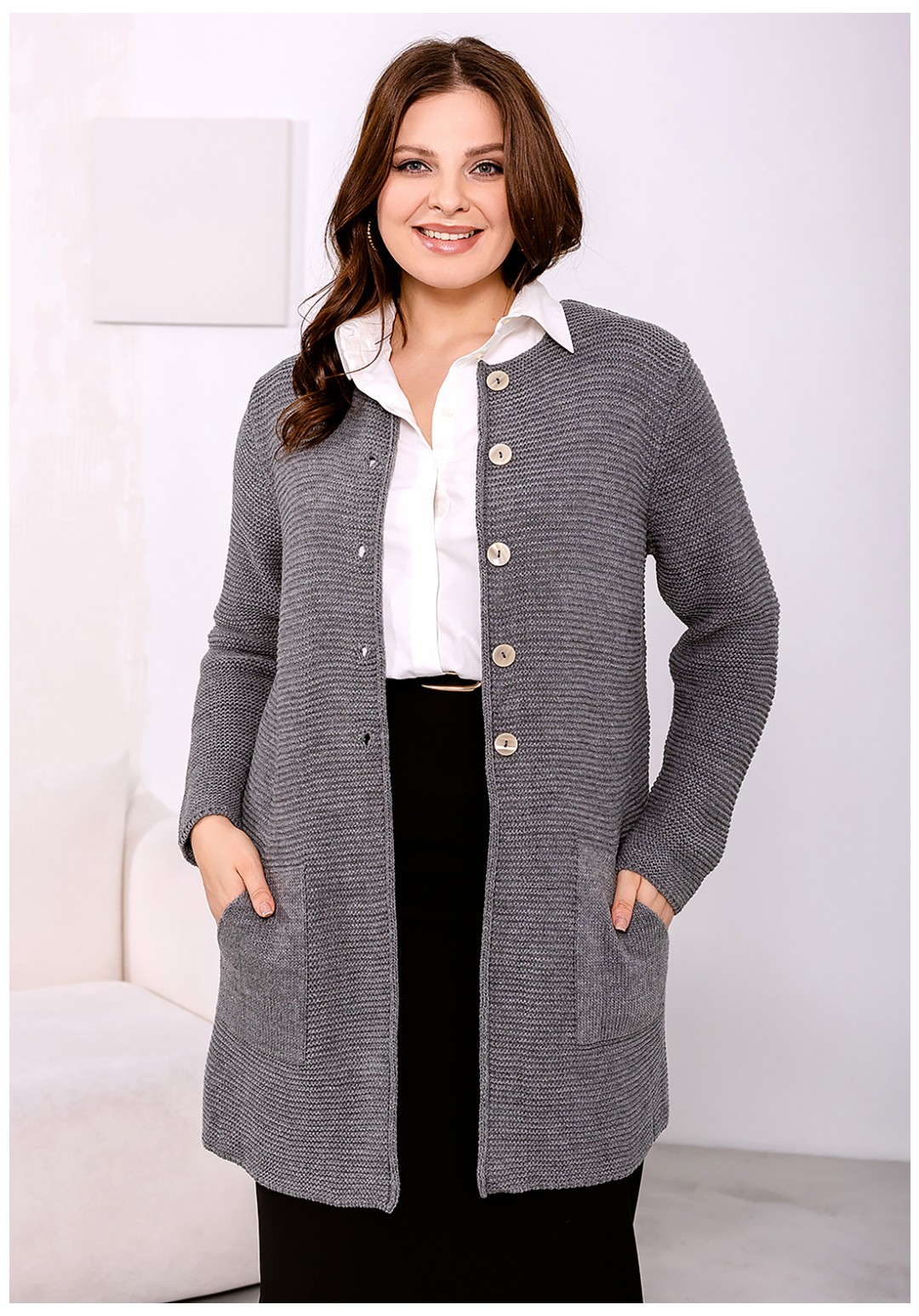 Жакет женский от производителя белорусского трикотажа Romgil — идеальное сочетание функциональности и элегантности. Одно из самых сильных преимуществ этого изделия - его натуральный состав. Сочетание его с брюками или юбкой — это идеальный способ подчеркнуть вашу профессиональную сторону для офиса, не утрачивая при этом комфорта. Также вы можете носить на рубашку или футболку, создавая модный слой для более структурированного casual образа. Прямой крой оверсайз скорректирует фигуру женщин больших размеров. Джемпер от Romgil идеально подойдет для беременных и будущих мам. Не упустите возможность обогатить ваш гардероб этим универсальным и стильным нарядным жакетом от Romgil.