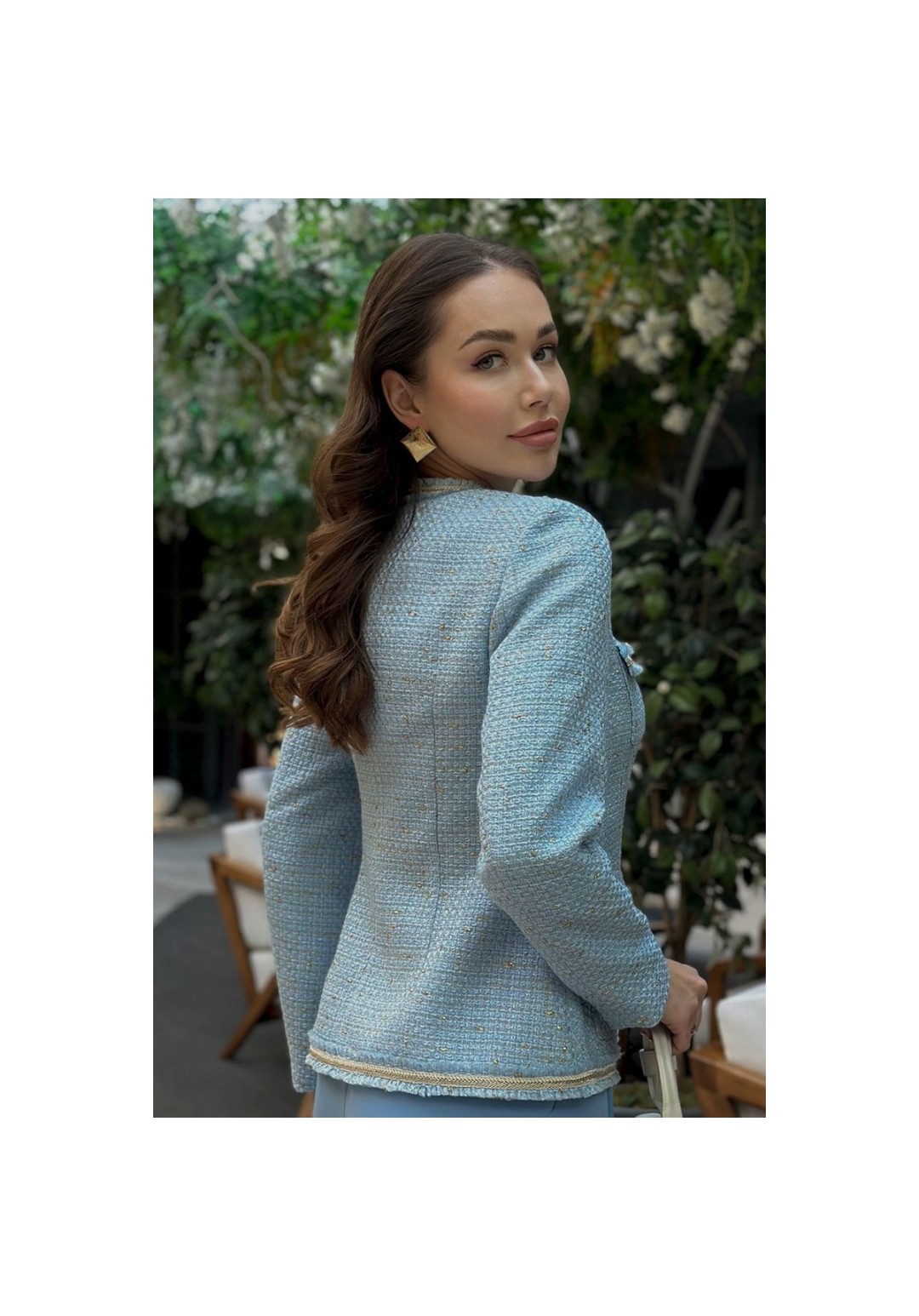 Элегантный твидовый жакет, выполненный в неподражаемом стиле Chanel, придаст вашему образу роскоши и изящества. Отделка из тесьмы подчеркивает его современный, но в то же время классический стиль, который будет актуален во все времена. Носите его в паре с любимыми джинсами или же с юбкой-карандаш для создания неповторимого делового образа. Жакет женский из костюмной текстурированной ткани на подкладке, с центральной бортовой застежкой встык на 4 навесных петли и пуговицы (размер и цвет фурнитуры может незначительно отличаться от фото). Перед жакета с талиевой вытачкой, идущей от низа изделия до центра груди. На переде расположены 2 пары накладных карманов с клапанами, вверху на уровне линии груди и немного ниже линии талии, на клапанах пришиты пуговицы (декоративный элемент). Углы кармана прямые, клапаны фигурной формы. Спинка со средним швом и талиевыми вытачками. Рукава втачные двухшовные, длинные. Горловина круглой формы, обтачная. Линия борта прямая. Край горловины, борт, клапаны и низ изделия оформлен бахромой и отделочной тесьмой. Жакет с плечевыми накладками. 42:Жакет Длина жакета по среднему шву спинки – 60,0 см (±2,0 см), Ширина жакета на уровне глубины проймы – 45,0 см (±1,0 см), Ширина жакета на уровне линии талии – 41,0 см (±1,0 см), Ширина жакета на уровне линии бедра – 48,0 см (±1,0 см), Длина рукава жакета – 60,5 см (±1,0 см), Ширина рукава жакета вверху – 16,0 см (±1,0 см), Ширина рукава внизу - 12,5 см (±0,5 см), Длина плеча жакета – 11,5 см (±0,5 см). 44:Жакет Длина жакета по среднему шву спинки – 60,0 см (±2,0 см), Ширина жакета на уровне глубины проймы – 47,0 см (±1,0 см), Ширина жакета на уровне линии талии – 43,0 см (±1,0 см), Ширина жакета на уровне линии бедра – 50,0 см (±1,0 см), Длина рукава жакета – 60,5 см (±1,0 см), Ширина рукава жакета вверху – 17,0 см (±1,0 см), Ширина рукава внизу - 12,5 см (±0,5 см), Длина плеча жакета – 11,5 см (±0,5 см). 46:Жакет Длина жакета по среднему шву спинки – 60,0 см (±2,0 см), Ширина жакета на уровне глубины проймы – 48,0 см (±1,0 см), Ширина жакета на уровне линии талии – 45,0 см (±1,0 см), Ширина жакета на уровне линии бедра – 52,0 см (±1,0 см), Длина рукава жакета – 60,5 см (±1,0 см), Ширина рукава жакета вверху – 18,0 см (±1,0 см), Ширина рукава внизу - 13,0 см (±0,5 см), Длина плеча жакета – 11,6 см (±0,5 см). 48:Жакет Длина жакета по среднему шву спинки – 60,0 см (±2,0 см), Ширина жакета на уровне глубины проймы – 50,0 см (±1,0 см), Ширина жакета на уровне линии талии – 47,0 см (±1,0 см), Ширина жакета на уровне линии бедра – 54,0 см (±1,0 см), Длина рукава жакета – 60,5 см (±1,0 см), Ширина рукава жакета вверху – 19,0 см (±1,0 см), Ширина рукава внизу - 13,0 см (±0,5 см), Длина плеча жакета – 11,6 см (±0,5 см). 50:Жакет Длина жакета по среднему шву спинки – 62,0 см (±2,0 см), Ширина жакета на уровне глубины проймы – 53,0 см (±1,0 см), Ширина жакета на уровне линии талии – 50,0 см (±1,0 см), Ширина жакета на уровне линии бедра – 57,0 см (±1,0 см), Длина рукава жакета – 60,5 см (±1,0 см), Ширина рукава жакета вверху – 19,5 см (±1,0 см), Ширина рукава внизу - 13,5 см (±0,5 см), Длина плеча жакета – 11,7 см (±0,5 см). 52:Жакет Длина жакета по среднему шву спинки – 62,0 см (±2,0 см), Ширина жакета на уровне глубины проймы – 55,0 см (±1,0 см), Ширина жакета на уровне линии талии – 52,0 см (±1,0 см), Ширина жакета на уровне линии бедра – 59,0 см (±1,0 см), Длина рукава жакета – 60,5 см (±1,0 см), Ширина рукава жакета вверху – 20,5 см (±1,0 см), Ширина рукава внизу - 13,5 см (±0,5 см), Длина плеча жакета – 11,7 см (±0,5 см). 54:Жакет Длина 
