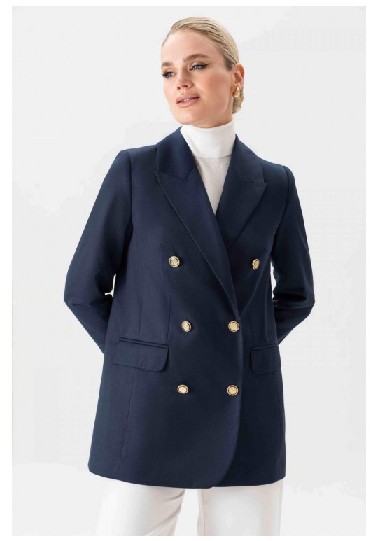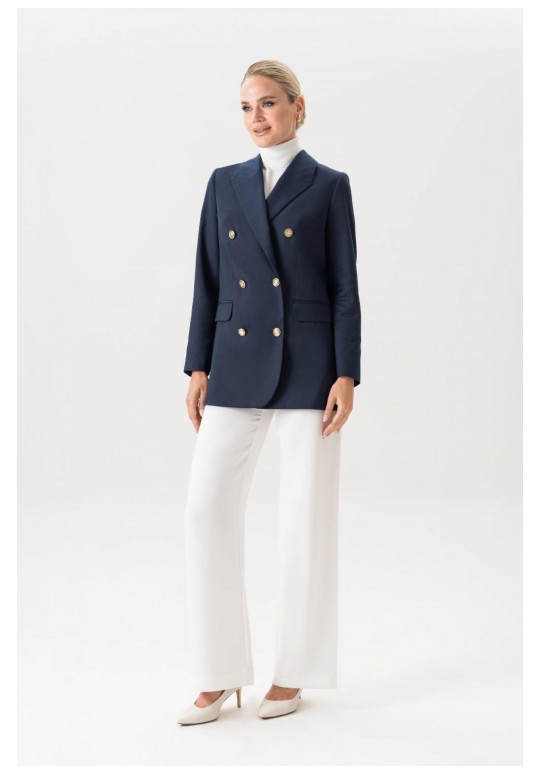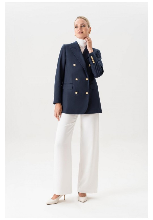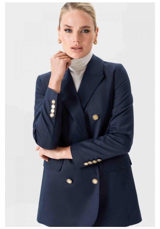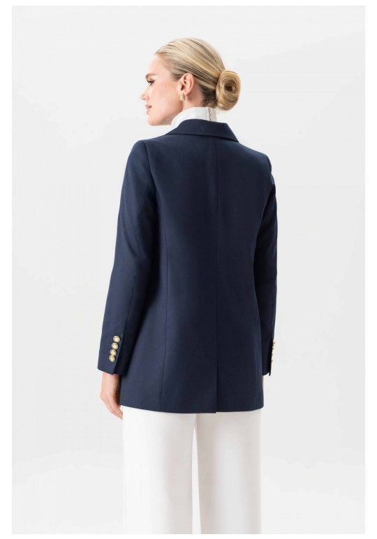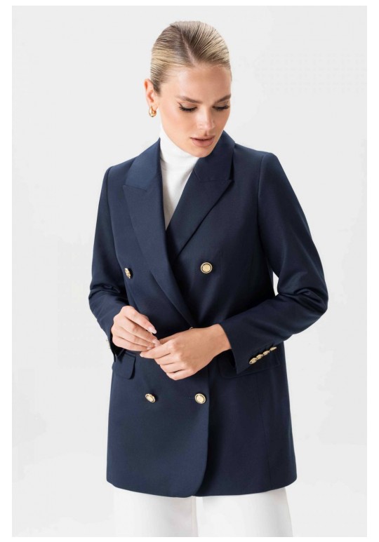 Пиджак женский удлиненный приталенный синий URS – это воплощение элегантности, стиля и практичности в одном изделии. Современные модные тенденции снова обращаются к классике, и именно поэтому женский жакет, особенно удлинённого кроя, стал настоящим must-have в гардеробе каждой женщины. Модель подчеркивает фигуру, выглядит дорого и изысканно, подходит для разных случаев – от деловых встреч до вечерних выходов. Жакет женский, свободного полуприлегающего силуэта, выполнен из костюмной ткани, на притачной подкладке, с двубортной застежкой на 2 петли и 6 декоративных пуговиц (размер и цвет фурнитуры может незначительно отличаться от фото), для повседневной носки. Перед и спинка с отрезными бочками. Перед в нижней части с прорезными карманами с клапанами и обтачками, с талиевыми вытачками, идущими от карманов вверх, с закругленными по низу бортами. Спинка со средним швом и шлицей. Рукава втачные, двухшовные, длинные. В локтевом шве по низу обработана отлетная шлица с 4-мя петлями и 4-мя декоративными пуговицами. Горловина оформлена воротником пиджачного типа. Жакет с плечевыми накладками.