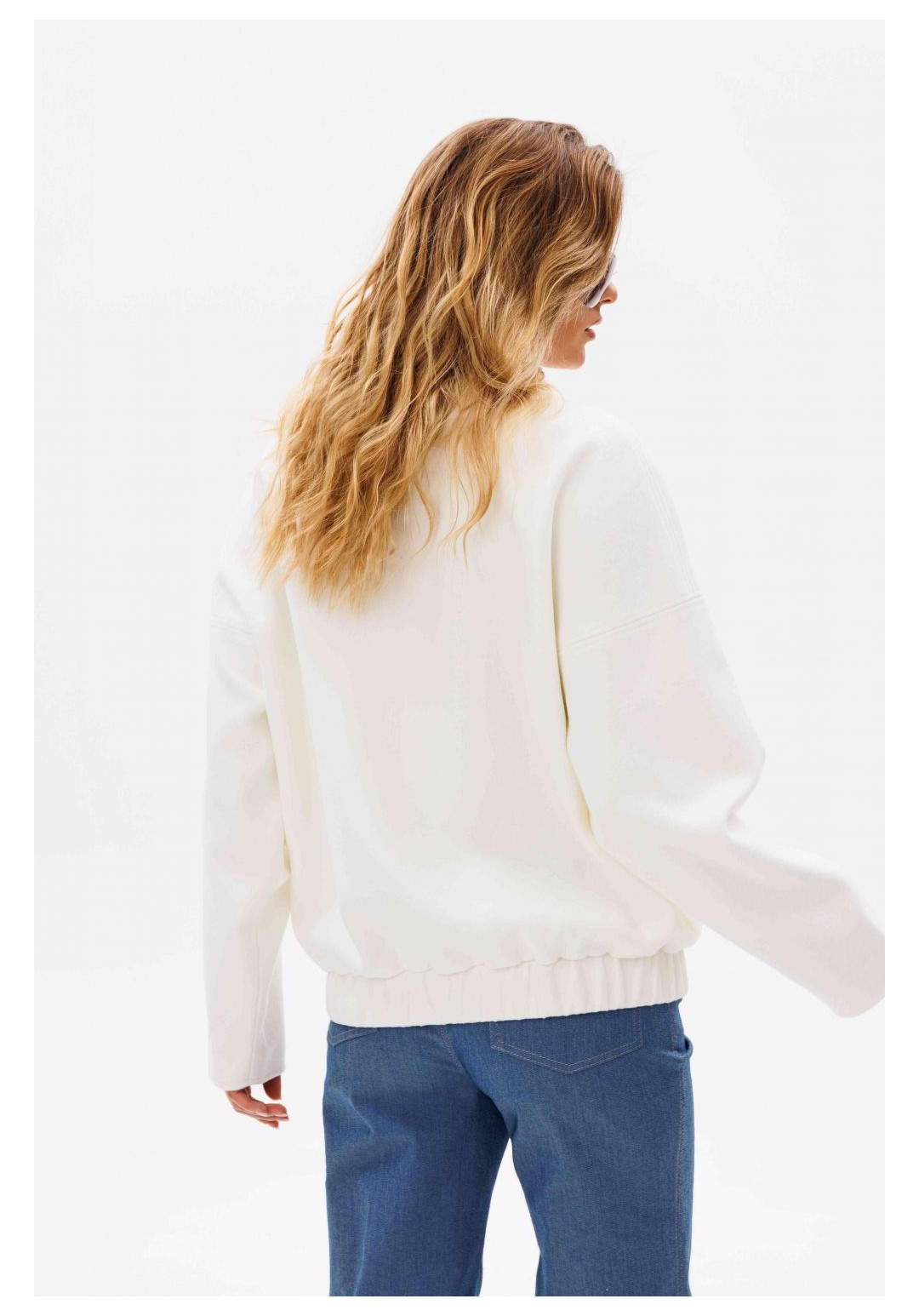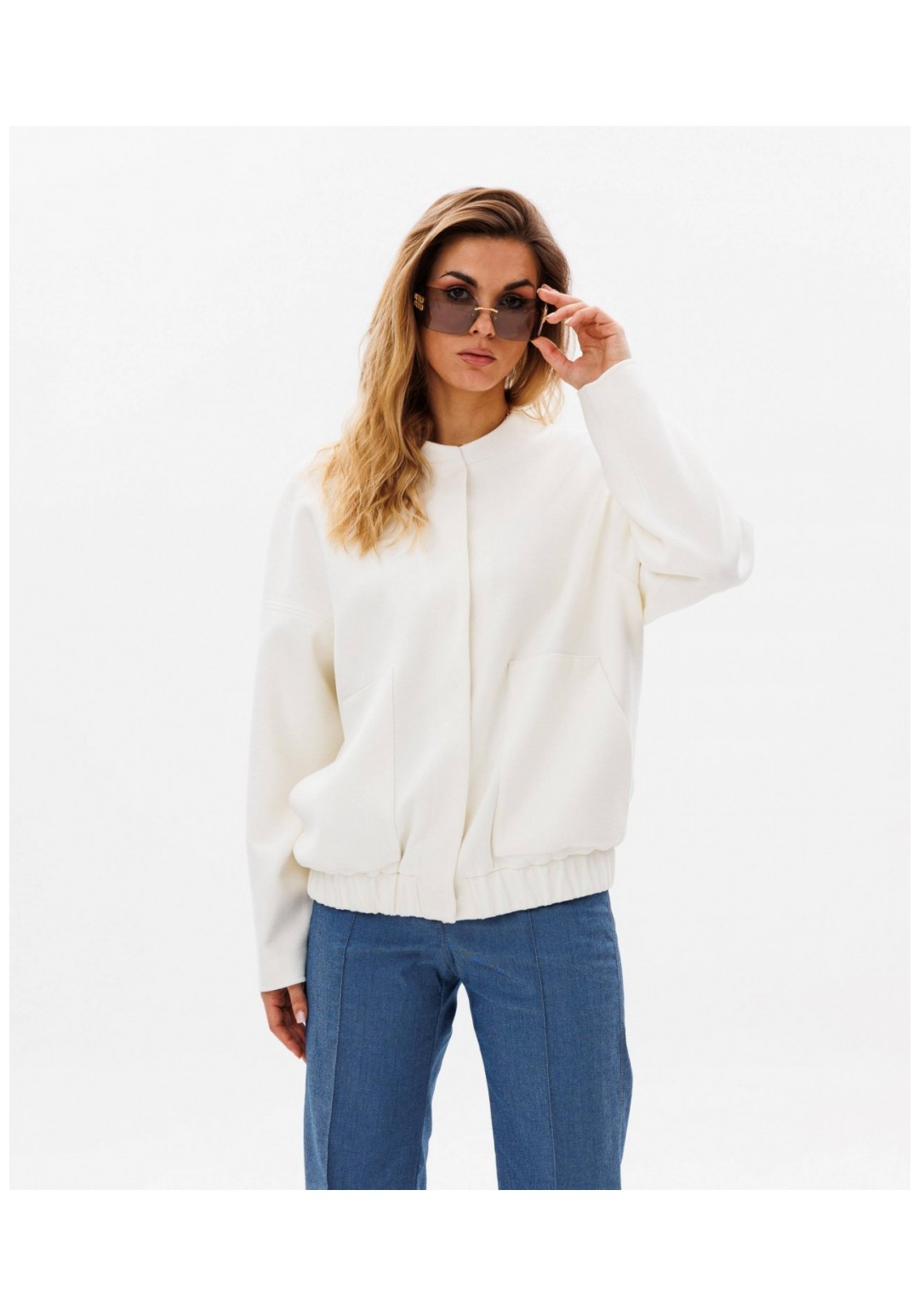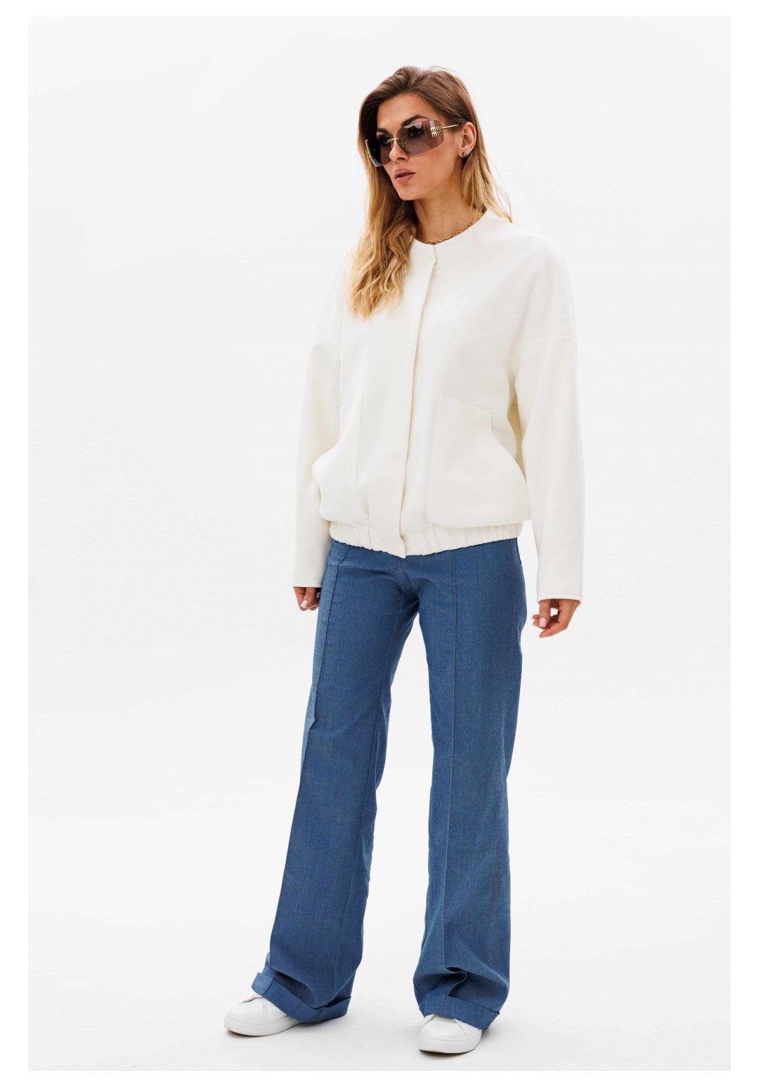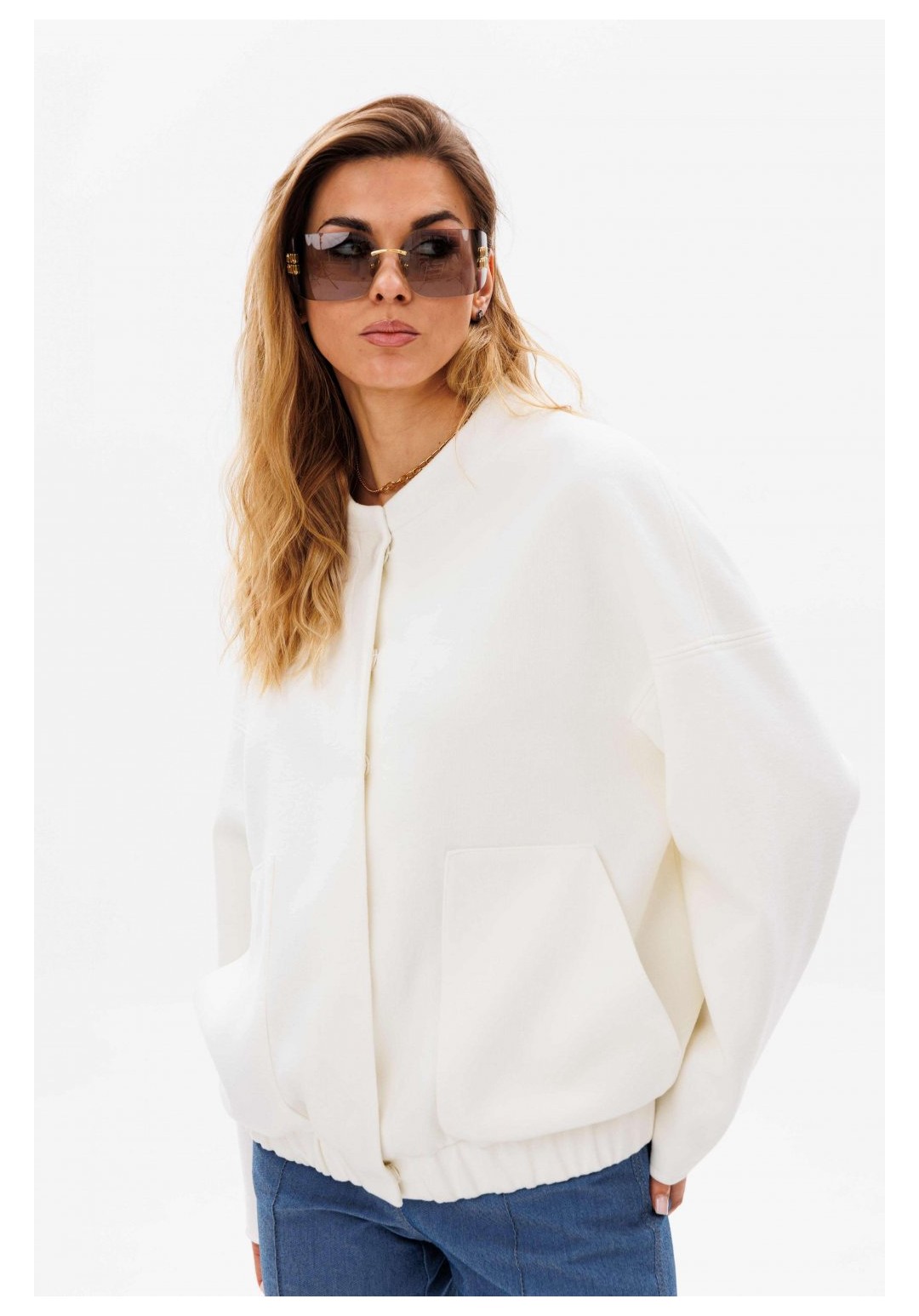 Куртка женская из тёплой ткани, объёмная, по низу на поясе с эластичной тесьмой, рукав широкий на спущенной пройме, воротник стойка, по переду изделия накладные карманы, застёжка спереди на кнопки. Изделие на паодкладке.
