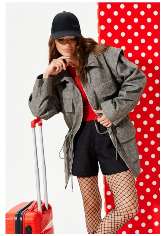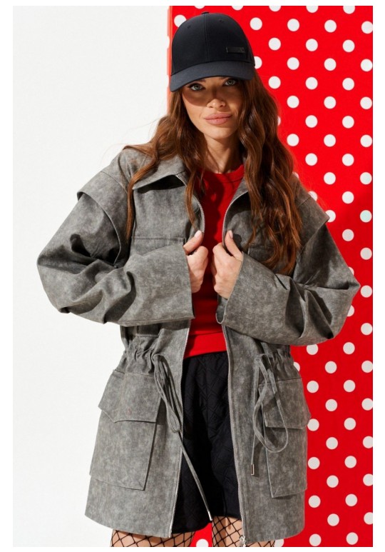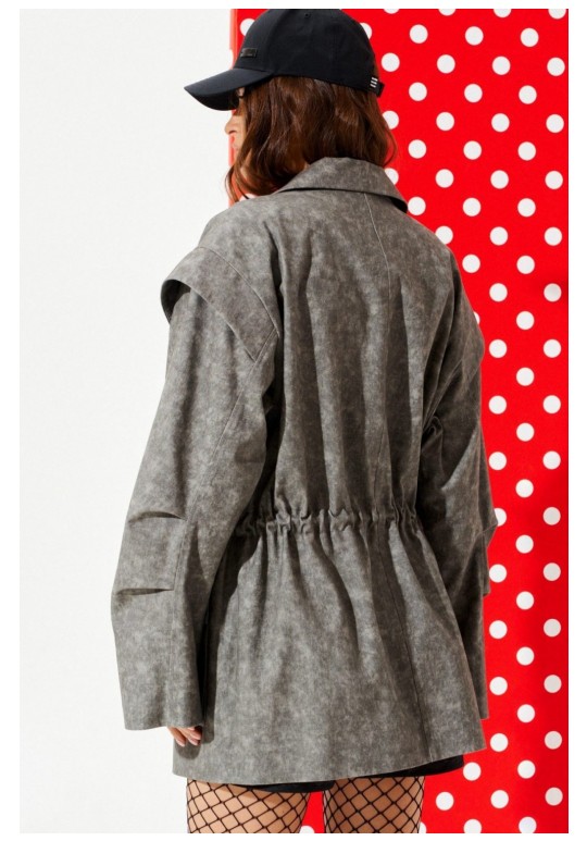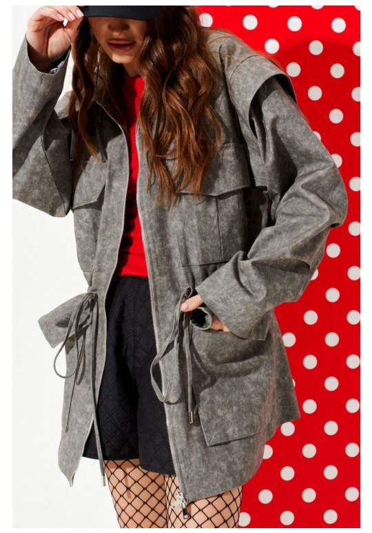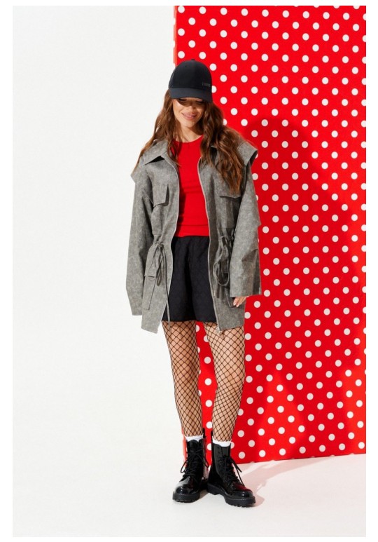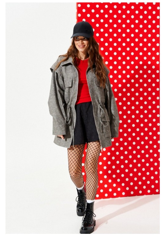 Парка свободного объема, приталенного силуэта, с центральной застежкой на тесьму-молнию, отложным воротником, на подкладке. Приталенность регулируется за счет кулиски со шнуром-завязкой и наконечниками. Детали переда с накладными карманами с клапаном. Спинка со средним швом. Рукав втачной, двухшовный, длинный. На локтевом шве рукава заложены две односторонние складки. Окат рукава оформлен отлетной деталью.
