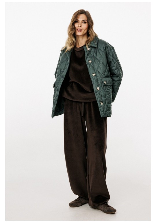 Куртка выполнена из плащевой ткани, простеганной с Isosoft. Куртка прямого силуэта, длиной до линии бедер. Застежка центральная бортовая на пришивные пуговицы. Спереди накладные карманы с клапанами. Спинка цельная. Воротник стояче-отложной. Рукав втачной, двухшовный. Плечевой шов спущен. Пройма углублена. Спинка длиннее переда. В боковых швах фигурные разрезы. Куртка на притачной по низу подкладке. Температурный режим от +5*С до -5*С. Длина куртки по спинке - 77 см. Длина рукава от горловины - 74 см. КУРТКА м. 3033 44 46 48 Длина по центру спинки 77 77 77 Длина рукава 73 73 73 Объем по груди 140 144 148 Объем по талии 136 140 144 Объем по низу 124 128 132 Объем рукава вверху 48 50 52