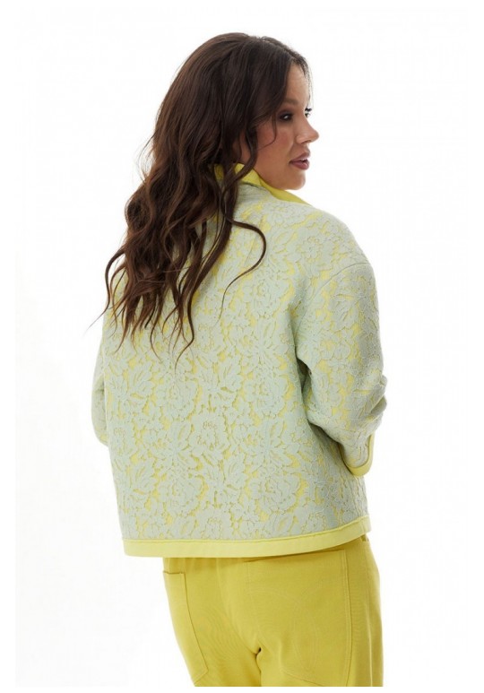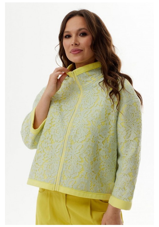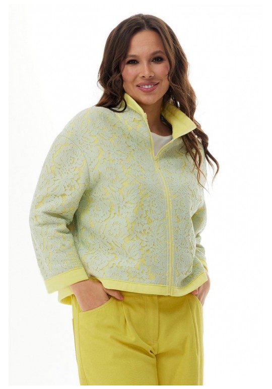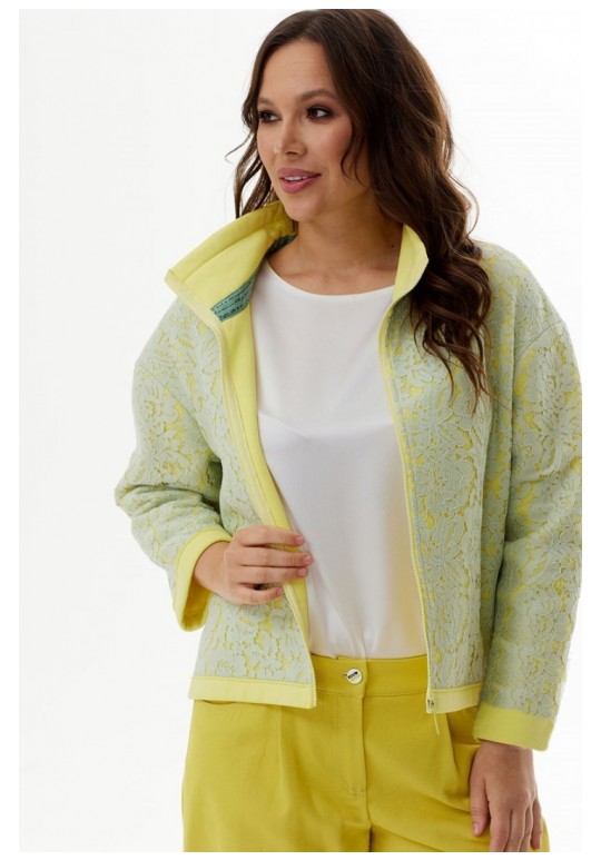 Стильный и невероятно красивый бомбер свободного кроя с центральной застежкой на молнию. Выполнен из однотонного качественного плотного трикотажного полотна(футер) с наложенным на него кружевом. За счет наложения разных фактур ткани и цветов создается необычный 3D эффект. Рукав длинный, втачной, слегка спущен. Горловина обработана стойкой. Длина бомбера от плечевого шва 60 см. Длина рукава 60 см.