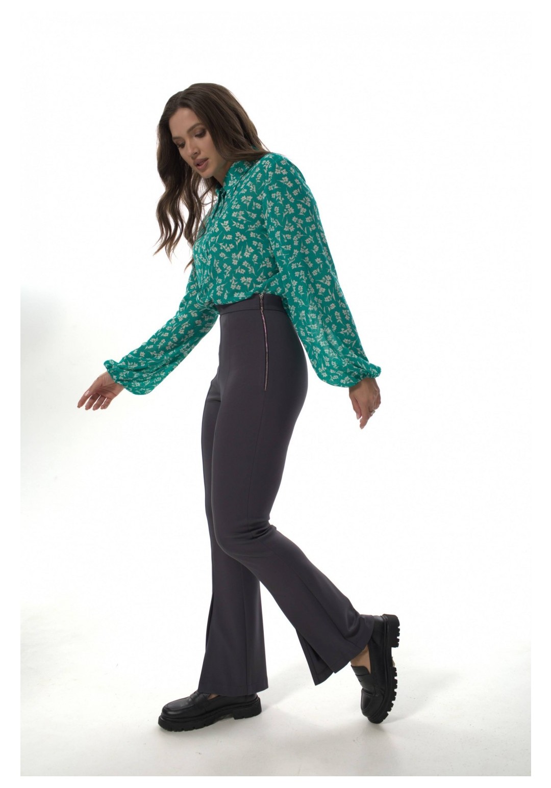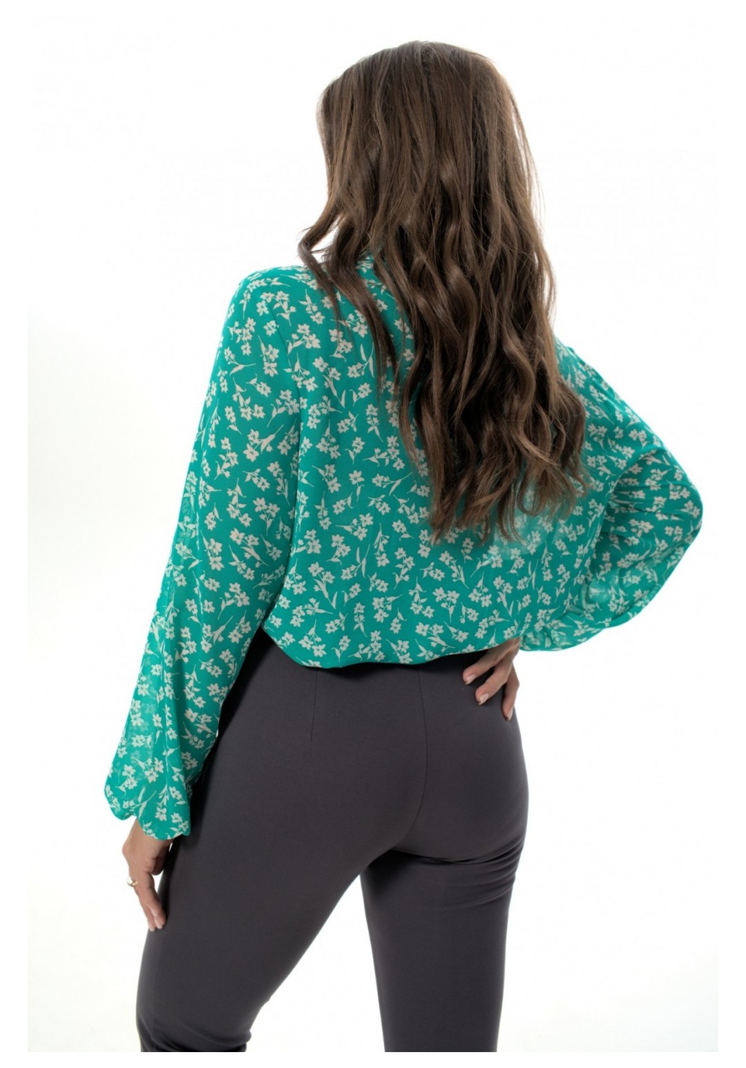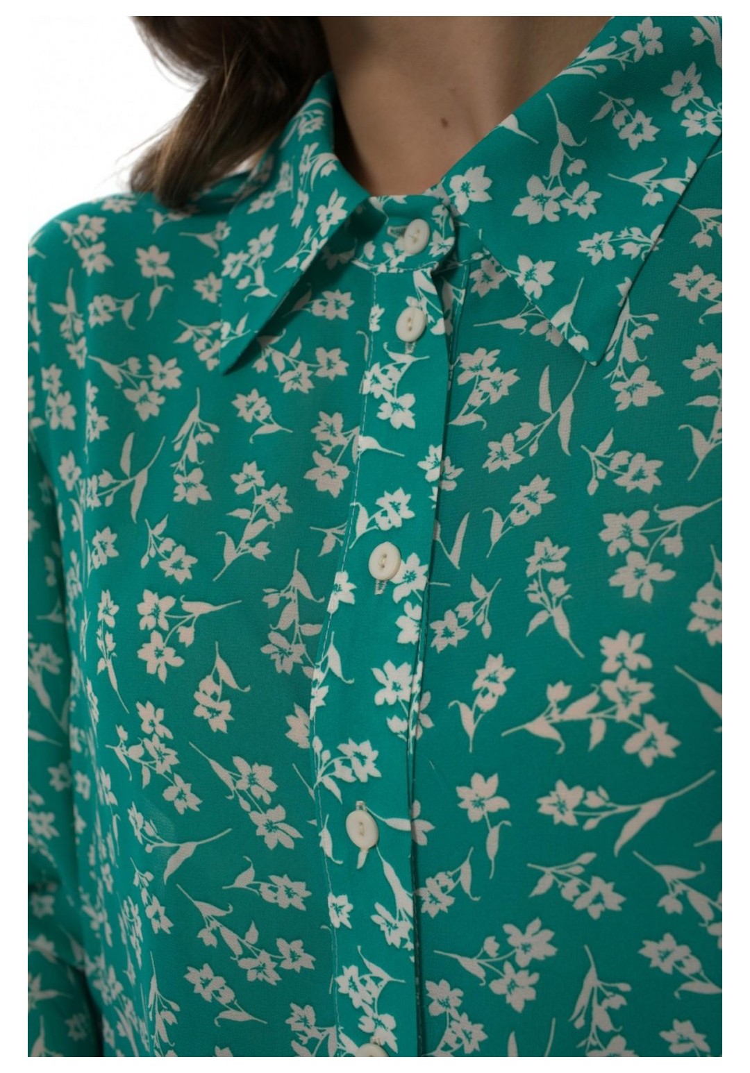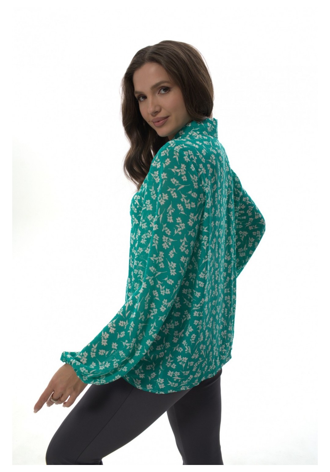 Рубашка прямого силуэта с воротником на стойке, отрезная планка по переду, с застежкой на петли-пуговицы. Рукав втачной прямой, объемный, свободный, по низу собран на резинку. Дышащая легкая воздушная ткань, не просвечивается. Простая в уходе и стирке. Рубашка представлена в двух тканях с разными принтами. Силка представлена с принтом леопард. Креп-шифон представлен в зеленых тонах с принтом цветы. При фотосьемке в образе мы использовали модели нашего бренда. Фотомодель ростом 173 см, размер 50. Фактические замеры готовых изделий, где: Рост фотомодели на изображениях – 173 см. Размер фотомодели – 48. ОГ – обхват по груди; ОТ – обхват по талии; ОБ – обхват по бедрам; ДИ – длина изделия; ДР – длина рукава. Размер 50 ОГ – 104; ОТ – 104; ОБ – 106; ДИ – 68; ДР – 61 Размер 52 ОГ – 108; ОТ – 108; ОБ – 110; ДИ – 68; ДР – 61 Размер 54 ОГ – 112; ОТ – 112; ОБ – 114; ДИ – 68; ДР – 61
