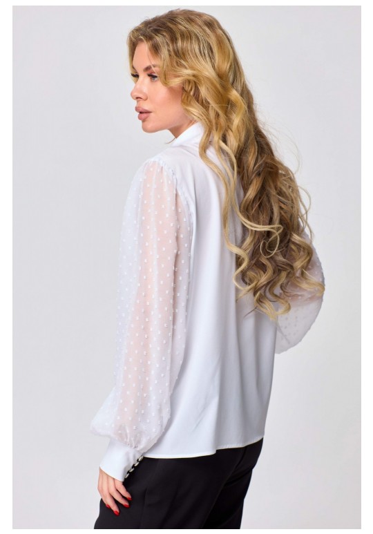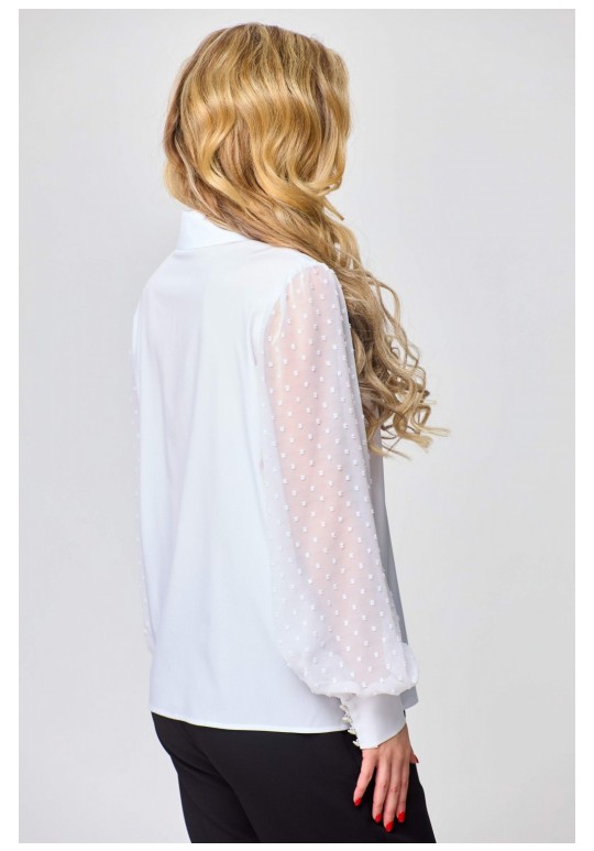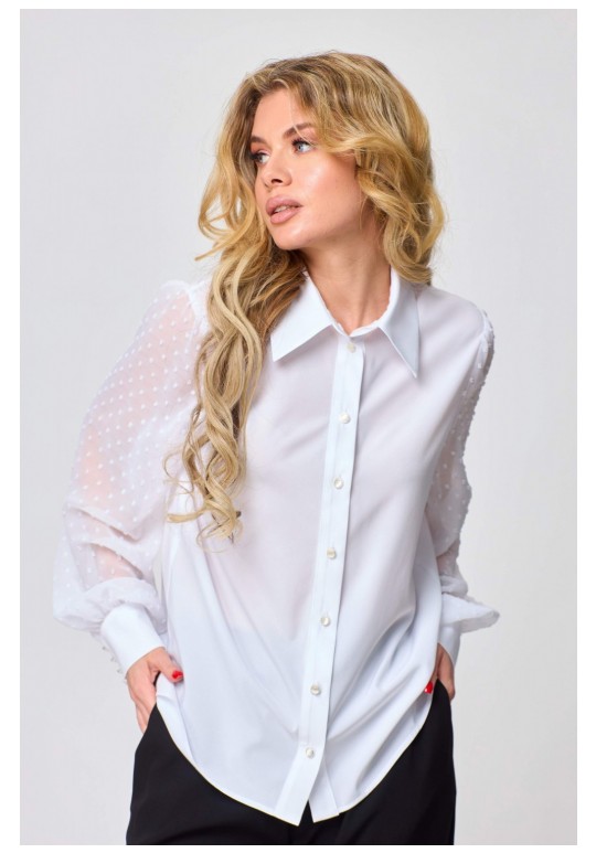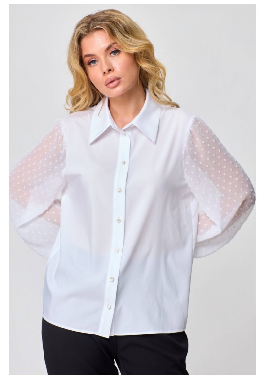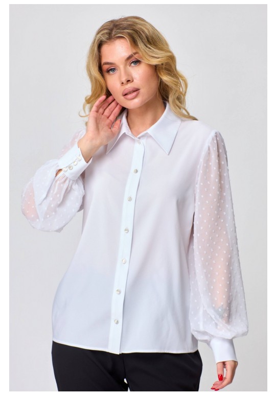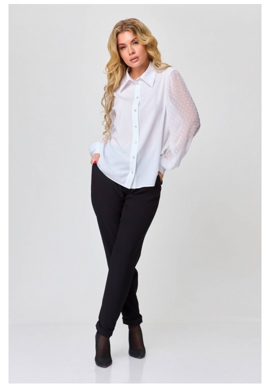 Представляем Вам классическую женскую блузу белого цвета - идеальное решение для создания элегантного и стильного образа. Блуза выполнена из высококачественного материала, благодаря чему она приятна на ощупь и обеспечивает комфорт при носке. Отличительной особенностью данной модели является отложной воротник на стойке, который придает образу изысканность и шарм. Застежка на петли и пуговицы спереди позволяет подобрать оптимальную посадку блузы на фигуре. Втачные рукава из отделочного шифонового прозрачного материала добавляют блузе легкости и воздушности. Сборка на рукавах создает интересный эффект, а широкий манжет с четырьмя пуговицами завершает образ и служит дополнительным украшением. Классическая женская блуза белого цвета с прозрачными рукавами станет незаменимым элементом Вашего гардероба и позволит создавать неповторимые и разнообразные образы на каждый день. Будьте уверены в своем стиле и комфорте с этой стильной и качественной блузой! Ткань Ниагара приятная на ощупь и легкая, слегка эластична, обладает превосходной способностью сохранять тепло и проводить воздух. Благодаря этим свойствам, комфортна для ношения в любое время года. Не требует особого ухода. При съемке в образе мы использовали модели нашего бренда для образа – брюки от костюма 5013. Наша фотомодель имеет рост 168 см. Фактические замеры изделий, где: ОГ – обхват груди; ОТ – обхват талии; ОБ – обхват бедер; ДИ – длина изделия; ДР – длина рукава; ШП – ширина плеч. Рост фотомодели – 168 см, размер фотомодели – 42. Размер 44 ОГ – 88-89; ОТ – 90-94; ОБ – 98; ДИ – 67; ДР – 65; ШП – 39 Размер 46 ОГ – 92-93; ОТ – 94-98; ОБ – 102; ДИ – 67; ДР – 65; ШП – 39 Размер 48 ОГ – 96-97; ОТ – 98-102; ОБ – 106; ДИ – 67; ДР – 66; ШП – 40 Размер 50 ОГ – 100-101; ОТ – 102-103; ОБ – 110; ДИ – 67; ДР – 66; ШП – 41 Размер 52 ОГ – 104-105; ОТ – 106-107; ОБ – 114; ДИ – 67; ДР – 66; ШП – 42 Размер 54 ОГ – 108; ОТ – 110; ОБ – 118; ДИ – 67; ДР – 66; ШП - 43