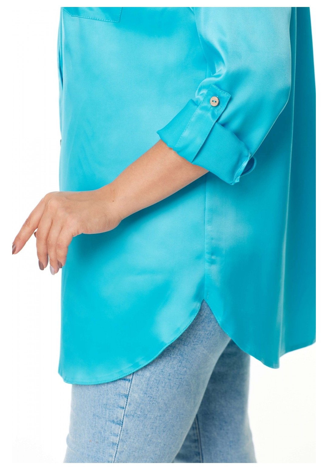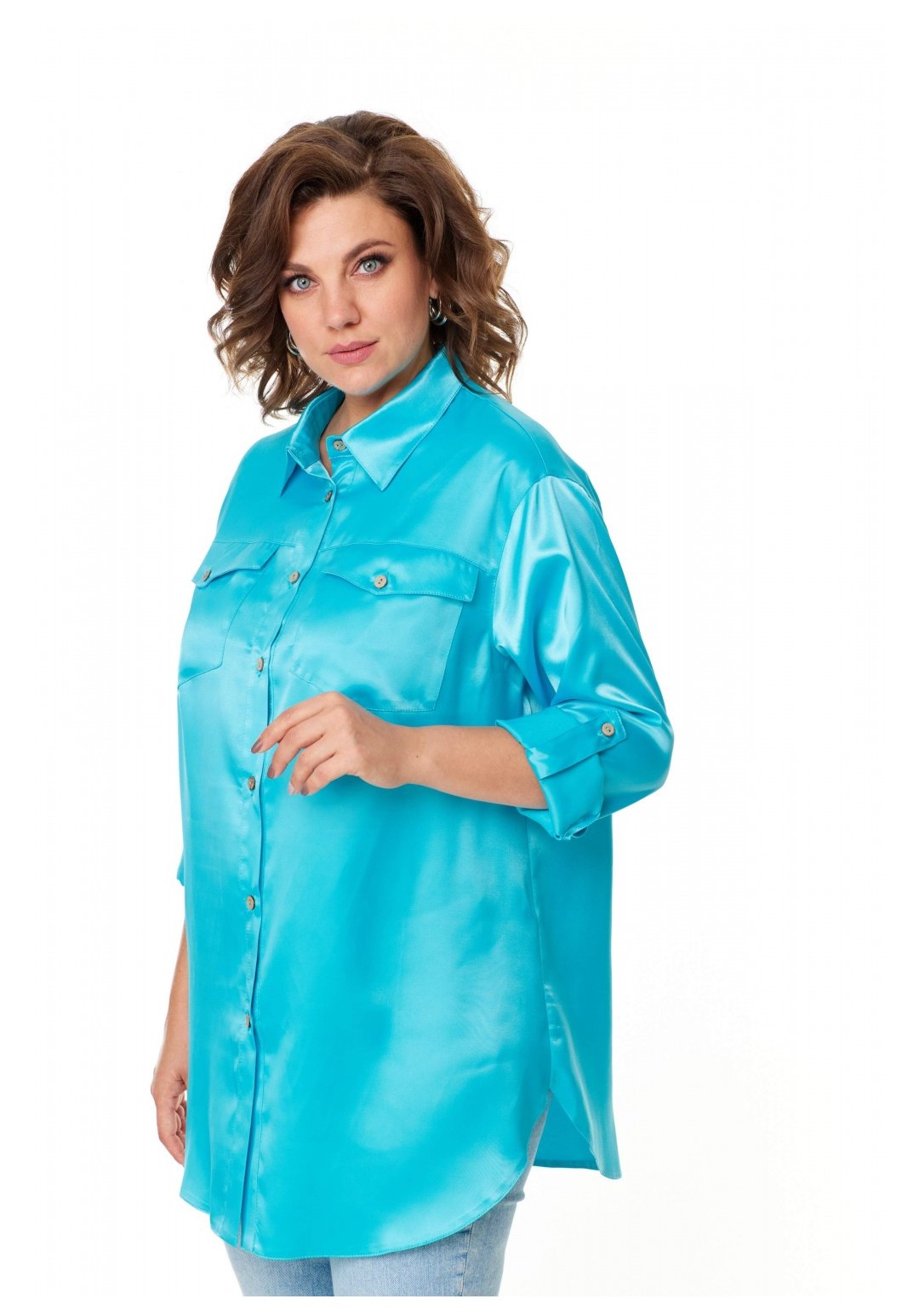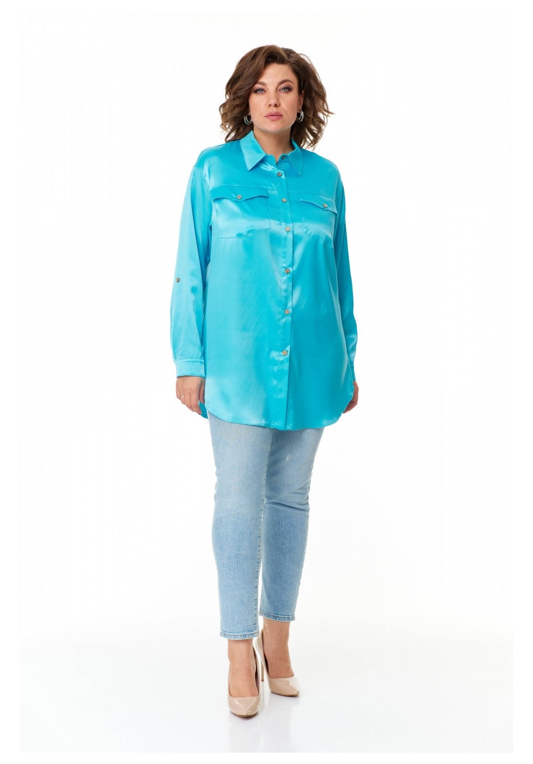 Стильная женская рубашка-блуза оверсайз из высококачественного русского атласа бирюзовых тонов станет прекрасным дополнением вашего гардероба. Свободный крой и классический воротник придают образу элегантность и женственность. Застёжка по переду на петли и оригинальные пуговицы с имитацией дерева добавляет шарма и делает рубашку ещё более привлекательной. Карманчики с клапанами напередних половинках рубашки также застёгиваются на пуговицы, обеспечивая удобство и функциональность. Рукава одношовные полуспущенные с манжетами внизу и застёжкой на пуговицы позволяют экспериментировать с образом, добавляя оригинальности и неповторимости. Паты в рукавах дают возможность носить рубашку разными способами, что делает её ещё более универсальной. Притачная кокетка на передних половинках и спинке рубашки подчёркивает изящество и изысканность обладательницы этого стильного предмета гардероба. Сборка по центру спинки кокетки акцентирует внимание на утончённости и элегантности женщины, которая носит эту рубашку. В образе с рубашкой для фотосъемки мы использовали брюки нашего бренда с артикулом 2013. Фотомодель на фотографиях ростом 172 сантиметра, с обхватом груди – 102, талии – 85, бедер – 113 см. Размер – 52 (как и размер рубашки на фото). Точные замеры в каждом размере блузы и маек прилагаются к описанию ниже. Ссылка на видеоролик с женской одеждой нашего бренда на нашем канале: https://youtu.be/C6yssva1_dw https://www.youtube.com/@AbbiClothes Фактические замеры изделий (в готовом виде), в которых: ОГ – обхват груди; ОТ – обхват талии; ОБ – обхват бедер; ДИ – длина изделий (по спинке); ДР – длина рукава (от выреза горловины/от плечевого шва); ШП – ширина по плечикам/по спинке в области лопаток. Рост фотомодели – 172 см, размер фотомодели – 52. Размер 48 ОГ – 112; ОТ – 112; ОБ – 116; ДИ – 82; ДР – 78/57; ШП – 47/45 Размер 50 ОГ – 116; ОТ – 116; ОБ – 120; ДИ – 83; ДР – 78/57; ШП – 49/47 Размер 52 ОГ – 120; ОТ – 120; ОБ – 124; ДИ – 85; ДР – 80/58; ШП – 50/48 Размер 54 ОГ – 124; ОТ – 124; ОБ – 128; ДИ – 86; ДР – 81/58; ШП – 51/49 Размер 56 ОГ – 128; ОТ – 128; ОБ – 132; ДИ – 87; ДР – 81/58; ШП – 51/49 Размер 58 ОГ – 132; ОТ – 132; ОБ – 136; ДИ – 88; ДР – 81/58; ШП – 52/50 Размер 58 ОГ – 132; ОТ – 132; ОБ – 136; ДИ – 89; ДР – 81/58; ШП – 52/50 Размер 60 ОГ – 136; ОТ – 136; ОБ – 140; ДИ – 90; ДР – 81/58; ШП – 55/53