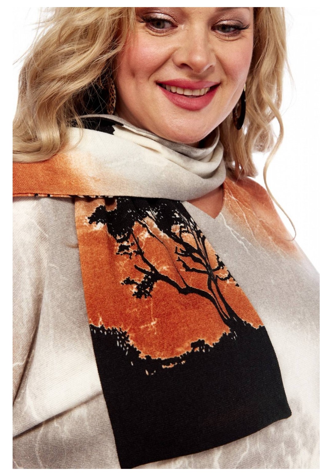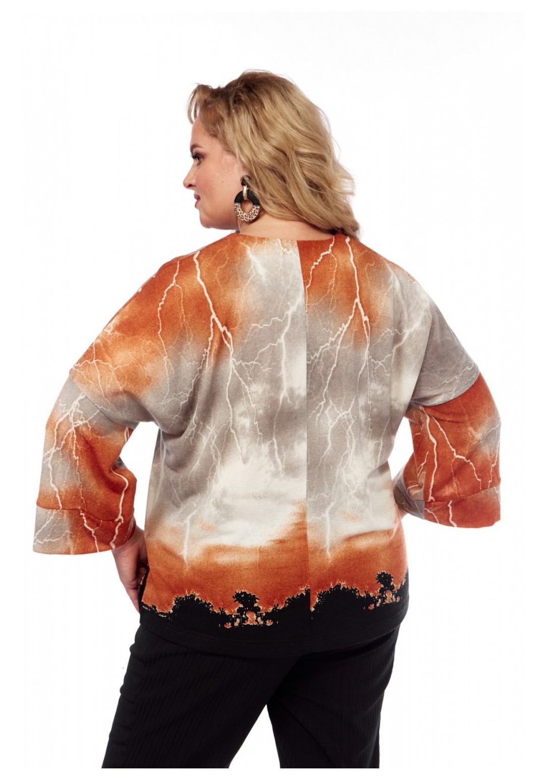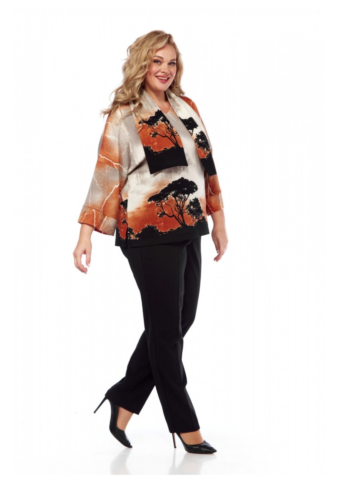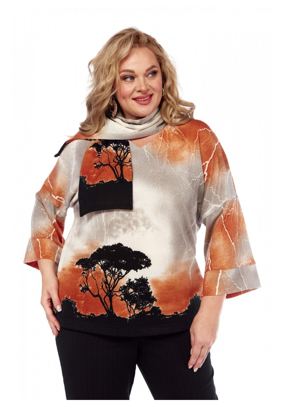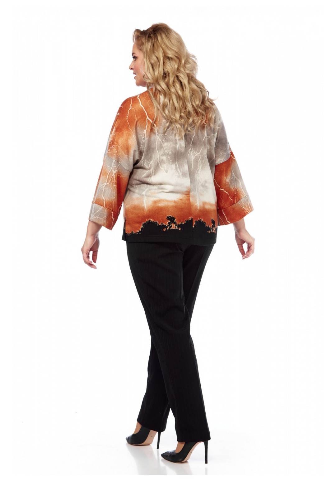 Блуза трикотажная премиального бренда Abbi с артикулом 4051 в размерах от 54 до 64 блуза черно-коричневых тонов с принтом Ткань: трикотаж Состав: полиэстер 90%, эластан 10% Рост: 164 Описание: Очаровательная женская блуза, созданная для комфорта и стиля, представляет собой свободный силуэт с V-образным вырезом горловины, спущенным одношовным втачным рукавом и широкими втачными манжетами по кругу рукава. Ткань блузы – эластичный трикотаж с принтом в природном анимализме, обработанный разрезами по бокам. Блузон идеально подходит для роста от 164 до 170 см, достигая середины бедер, и придает элегантность любому типу фигуры. В комплекте – шаль из основной ткани с таким же принтом. Подробные замеры изделий в каждом размере доступны в описании и фототаблице, чтобы помочь вам выбрать подходящий размер. Наша модель, ростом 172 см и параметрами фигуры для размера 54, демонстрирует блузу 54 размера. Если у вас возникли сомнения относительно выбора размера, не стесняйтесь обращаться к нам с параметрами вашей фигуры - мы поможем вам точно определить подходящий размер. Приобретая эту блузу, вы получите не только стильный наряд, но и уверенность в своем образе. Сделайте правильный выбор с нашей помощью! Ссылка на видеоролики на нашем канале: https://www.youtube.com/watch?v=vmOwHjQV36o https://www.youtube.com/@AbbiClothes Фактические замеры изделий (в готовом виде), в которых: ОГ – обхват груди; ОТ – обхват талии; ОБ – обхват бедер (Параметры фотомодели: 103-79-115); ДИ – длина изделий (по спинке от выреза горловины по центру); ДР – длина рукава (от выреза горловины и до края рукава); ОР – обхват рукава в пройме (в предплечье в самом широком месте). Фотомодель на фотографиях – ростом 172 сантиметра, с обхватом груди – 103, талии – 79, бедер – 115 см. Размер изделия при съемке на фотомодели – 54. Размер 54 ОГ – 116; ОТ – 116; ОБ – 116; ДИ – 63; ДР – 58; ОР – 42 Размер 56 ОГ – 120; ОТ – 120; ОБ – 120; ДИ – 64; ДР – 59; ОР – 42 Размер 58 ОГ – 124; ОТ – 124; ОБ – 124; ДИ – 64; ДР – 59; ОР – 43 Размер 60 ОГ – 128; ОТ – 128; ОБ – 128; ДИ – 64; ДР – 60; ОР – 44 Размер 62 ОГ – 132; ОТ – 132; ОБ – 132; ДИ – 64; ДР – 61; ОР – 44 Размер 64 ОГ – 136; ОТ – 136; ОБ – 136; ДИ – 64; ДР – 62; ОР – 44