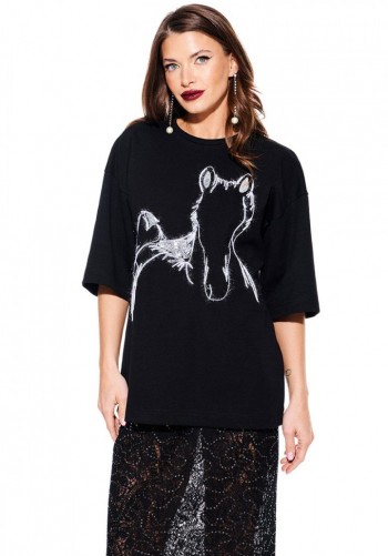 Блуза из бархата на трикотажной основе, умеренного объема, полуприлегающего силуэта с акцентом на одно плечо, с фигурной драпировкой на уровне груди. Вырез горловины в форме лодочки. Левый плечевой и боковой шов оформлены сборкой. Длина до линии бедер.