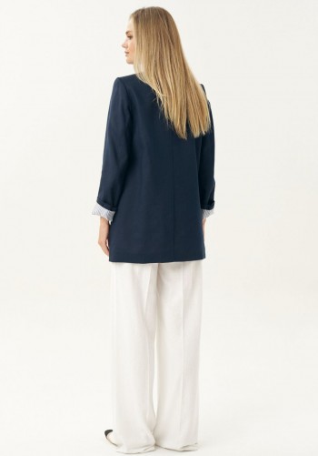 Блузка прямого силуэта из ришелье. Воротник рубашечного типа с центральной застежкой на петли и пуговицы. Рукав втачной длинный, по низу манжета на петли и пуговицы. По переду нагрудные карманы. На спинке кокетка и складки. По низу блузки в боковых швах разрезы. Обращаем ваше внимание, что фурнитура может отличаться от фото. Длина блузки (44-48р – 72см)(50-54р - 72,5см)(56-60р - 73см). Длина рукава 77 см.