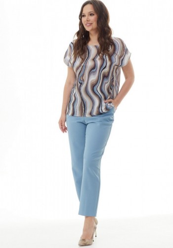 Стильная блуза свободного силуэта. Блуза рубашечного кроя с центральной застежкой на пришивные пуговицы, закрытых планкой. Воротник отложной. Рукав длинный, втачной. Оригинальное исполнение рукава с удлиненной белой манжетой придает блузе неповторимый стиль. Длина блузы от плечевого шва 72см. Длина рукава 60см.