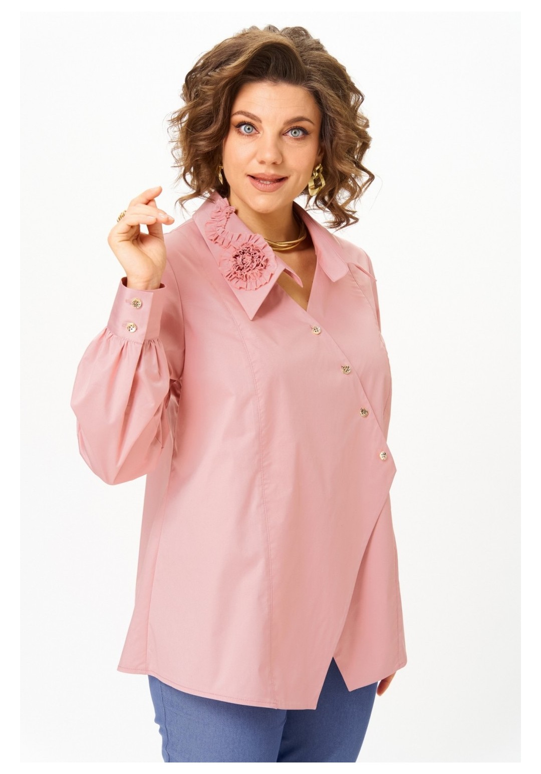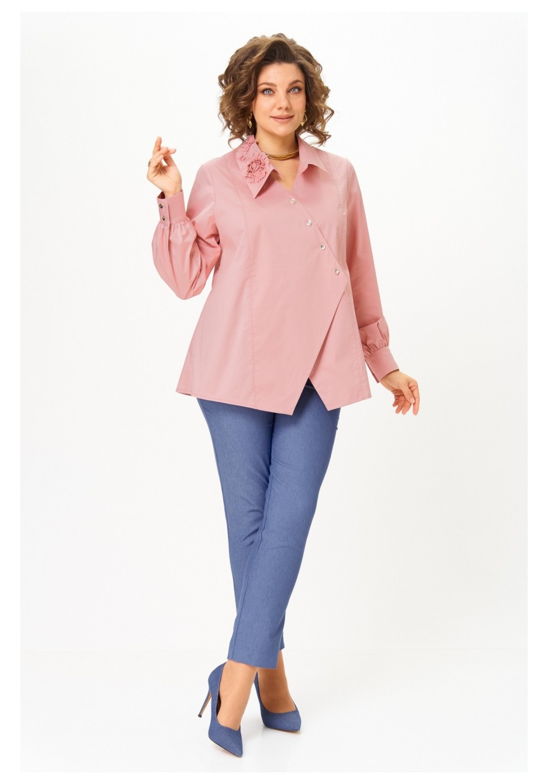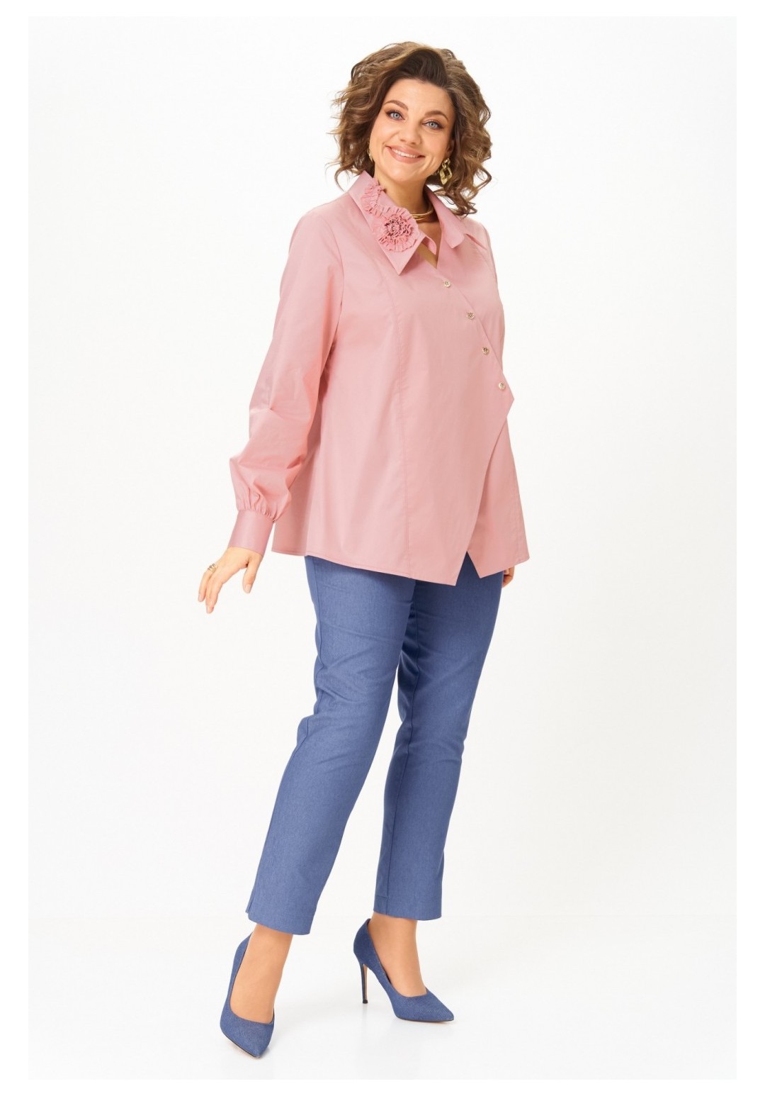 Блузка выполнена в насыщенном цвете марсала, подчеркивающем элегантность и изысканность вашего образа. Модель в фирменном стиле Michel Chic сочетает комфорт хлопковой ткани и изысканность деталей. Преимущества: ◾Натуральная хлопковая ткань: дышит, дарит комфорт, не теряет форму. ◾Авторский асимметричный крой с декоративными пуговицами. ◾Акцентный воротник с объёмными цветами — изюминка образа. ◾Рукав на манжете с пуговицами — практичность и стиль. ◾Универсальная длина: подходит для ношения навыпуск и заправленной. ◾Идеально сочетается и с брюками, и с юбками. Почему стоит взять: В этой блузке вы будете выглядеть свежо и элегантно каждый день. Она легко впишется как в офисный гардероб, так и в вечерний образ. Насыщенный цвет марсала делает её универсальной и комплиментарной к разным цветам. А главное — в ней вы вне конкуренции, потому что ваш образ будет говорить сам за себя. Длина блузы по спинке 71 см +/- 1 см, длина рукава 66 см +/- 1 см. Изделие подойдет на рост 170 см.
