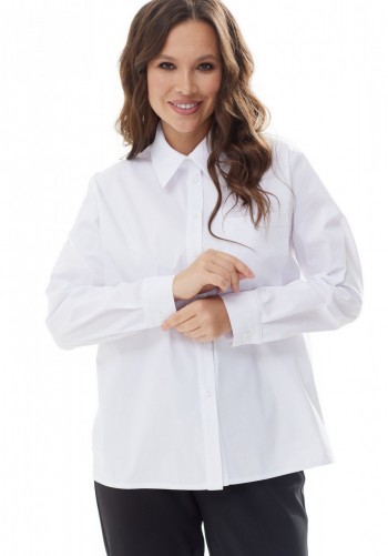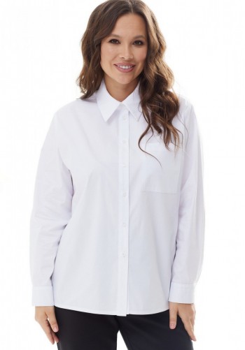 Блуза приталенного силуэта и цельнокроеной пелериной (приобрести брюки с фото можно по арт. 6671). Детали: прилегающий силуэт, талиевые вытачки по переду и спинке, цельнокроеная горловина стойка, потайная молния в среднем шве спинки, блуза на подкладке. Длина блузы по спинке около 62 см в размерах 40-46, около 65 см в 48-52. (приобрести брюки с фото можно по арт. 6671)