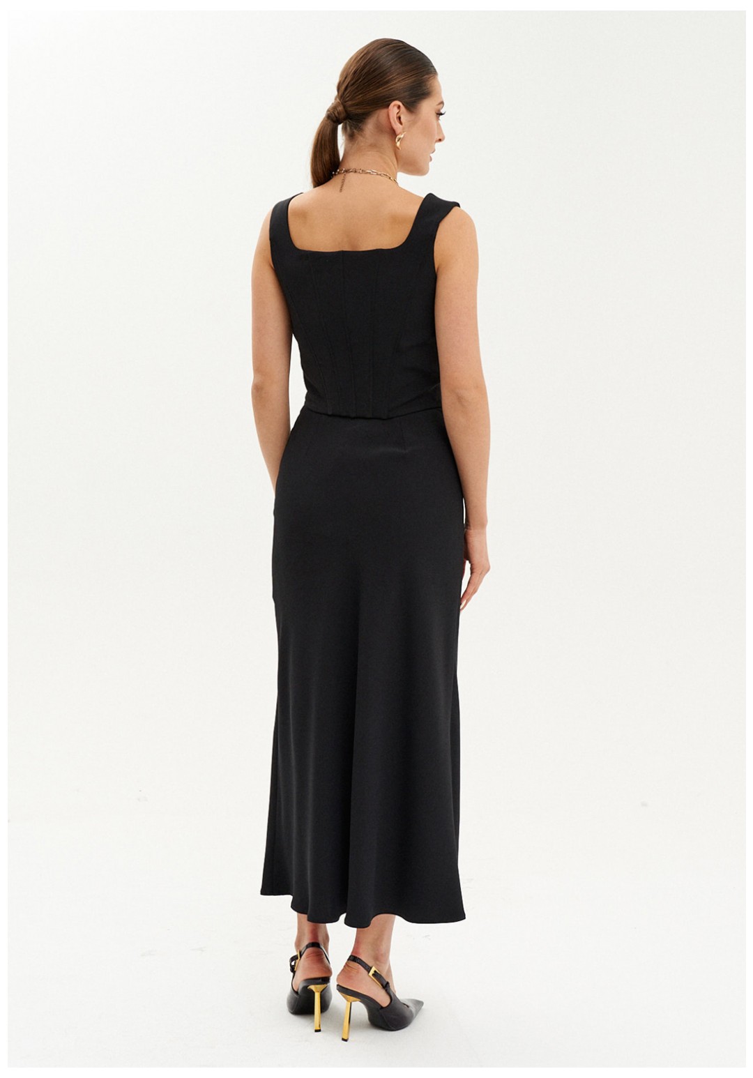 Элегантный женский корсет из костюмной ткани — идеальный выбор как для повседневных образов, так и для торжественных выходов. Приталенный силуэт корсета подчёркивает фигуру, а укрепляющий регилин "китовый ус" помогает сохранять идеальную форму. Спереди и на спинке расположены вертикальные рельефы с вставками для дополнительного комфорта и поддержки. V-образная горловина добавляет изящности, а удобные бретели и потайная застёжка-молния обеспечивают удобную посадку. Этот стильный и утончённый корсет станет прекрасным акцентом, подходящим для создания модных и женственных образов на каждый день и для особых случаев.