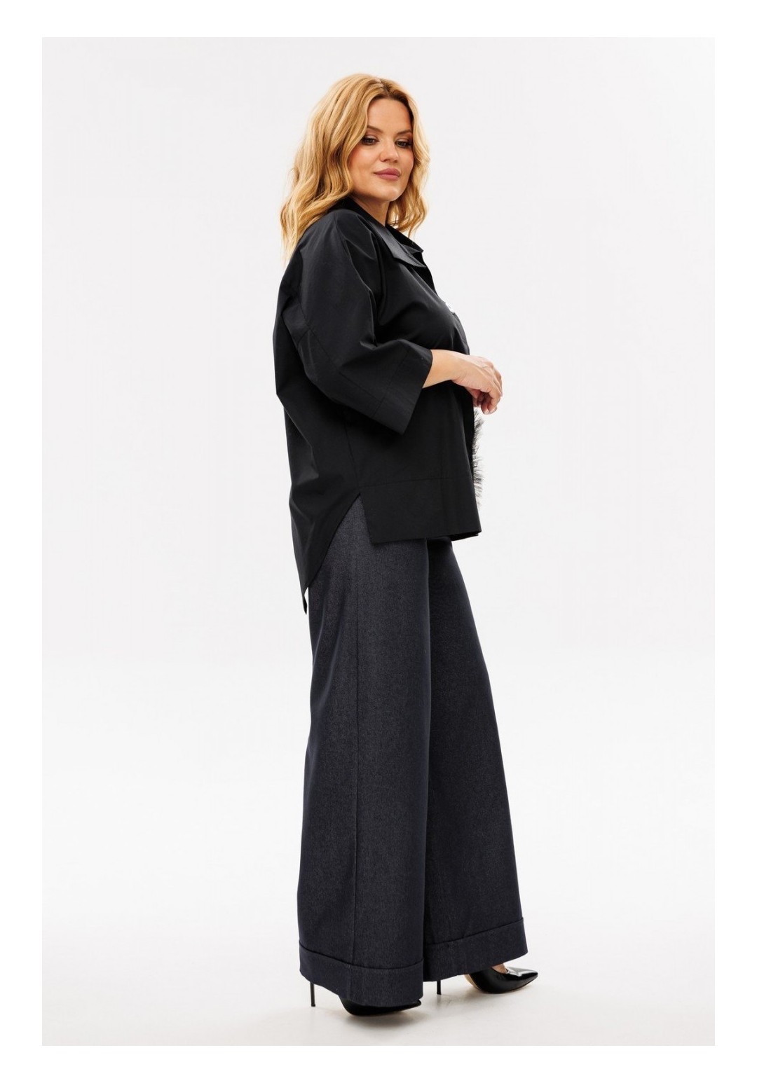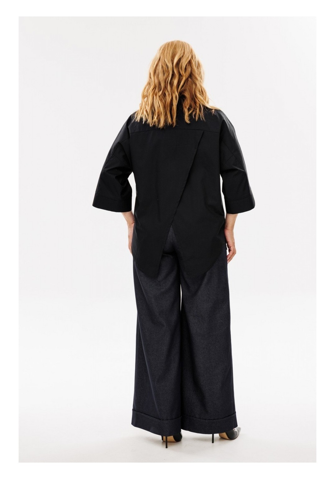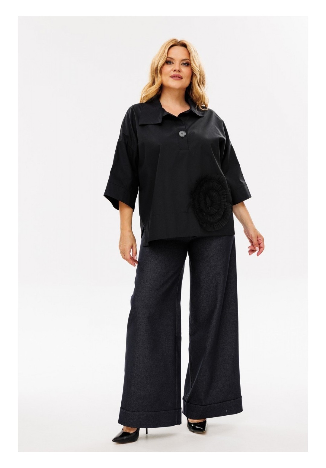 Женская хлопковая блуза в стиле бохо прекрасно вольется в повседневную жизнь и станет одной из любимых базовых вещей в Вашем гардеробе. Блуза свободного кроя. Перед цельный с планкой-застежкой до груди. Спинка с плечевой кокеткой, переходящей в рукав. Рукав 3/4 с притачной манжетой по низу. Из-под кокетки спинки — запах из двух нижних деталей блузы, фигурный низ, по бокам изделия разрезы. По низу переда широкая подгибка. Декорирована блуза настрочным цветком из сетки. Изделие хорошо сочетается как с брюками, так и с юбками, с классической и спортивной обувью. Длина изделия по спинке 74 (+/- 1 см). Длина рукава от горловины 55 (+/- 1 см). Изделие подойдет на рост 170 см.