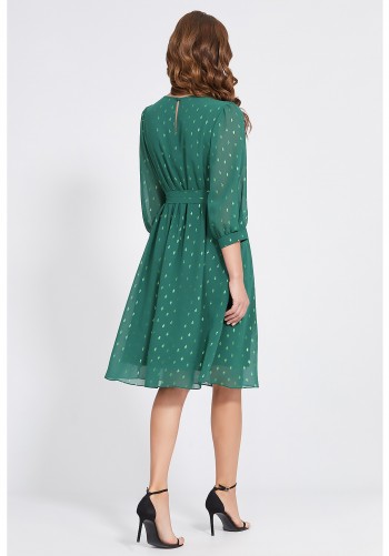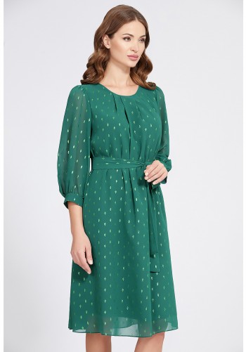 Блуза женская, свободного силуэта. Застежка центральная, на фигурную планку. Горловина обработана прилегающей стойкой. Рукав втачной, длинной ¾. Длина рукава фиксируется патой. Нагрудные карманы с клапанами. Кокетки полочек и спинки отстрочены двойной строчкой.