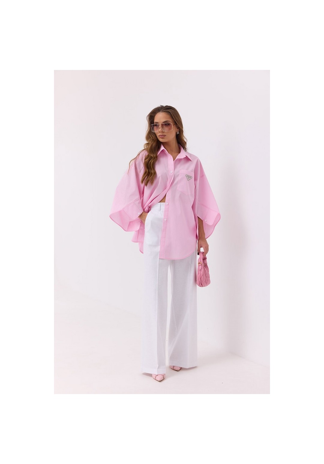Блузка объемной формы. Застежка по переду на петли и пуговицы. Воротник рубашечный. На переде накладной карман с вышивкой. Рукав объемной формы с манжетой. Манжета с застежкой на петлю и пуговицу. Низ блузки фигурной формы. Длина рукава 54 см. 44 р-р: ОГ - 122 см., ОТ - 118 см., ОБ - 124 см. 46 р-р: ОГ - 126 см., ОТ - 122 см., ОБ - 128 см. 48 р-р: ОГ - 130 см., ОТ - 126 см., ОБ - 132 см. 50 р-р: ОГ - 134 см., ОТ - 130 см., ОБ - 136 см. 52 р-р: ОГ - 138 см., ОТ - 134 см., ОБ - 140 см.