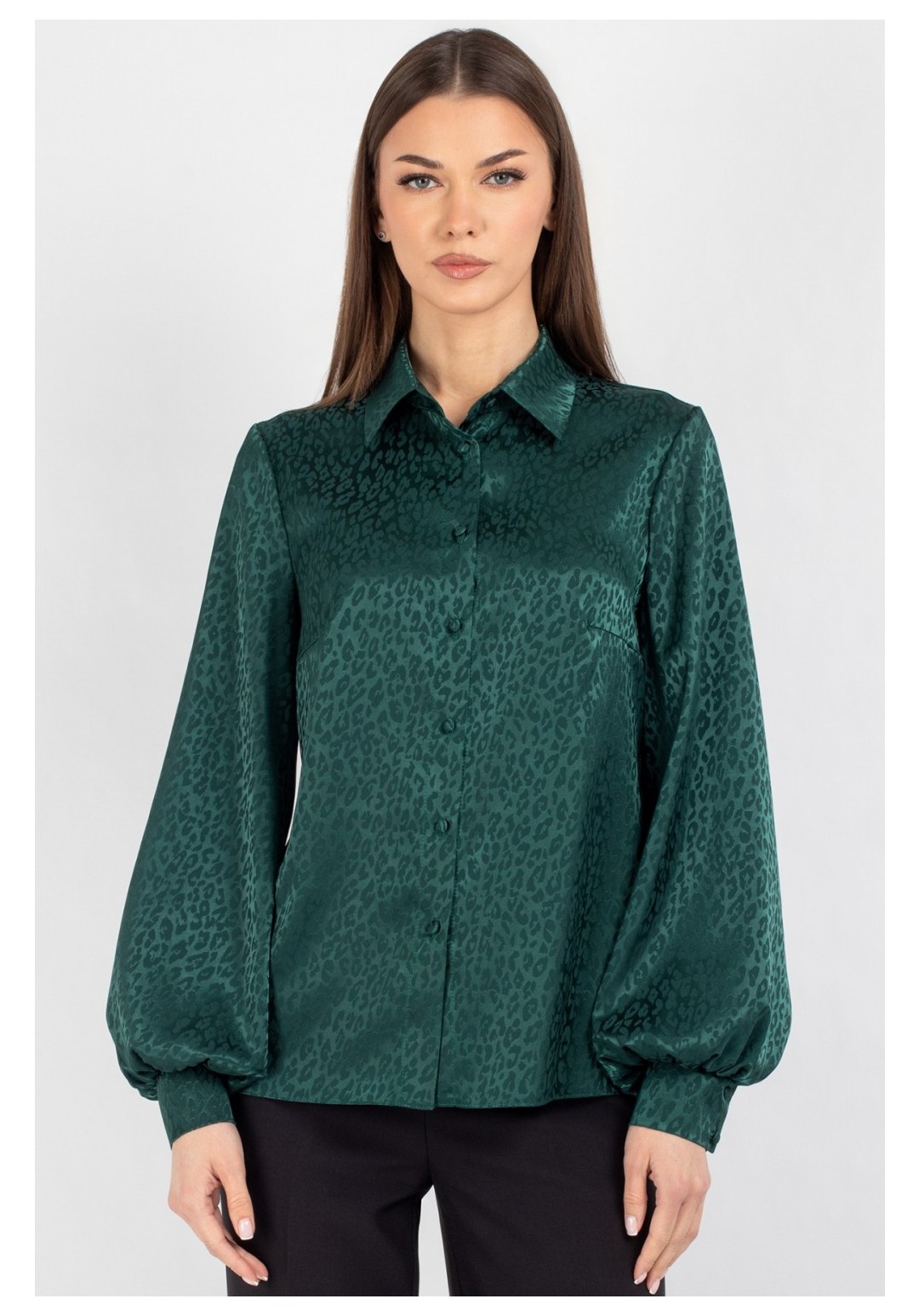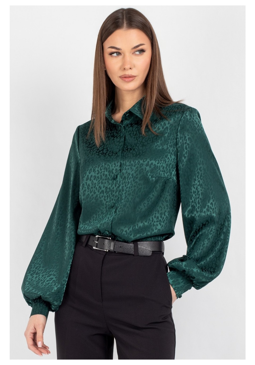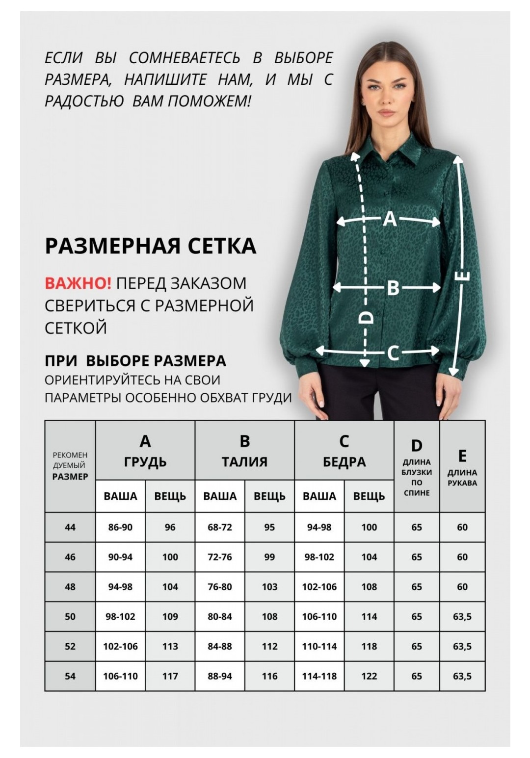 Женская блузка полуприлегающего силуэта — идеальный выбор для создания элегантных образов на каждый день. Эта модель сочетает в себе строгость классического кроя и женственность линий. Стильная и универсальная блуза, которая одинаково хорошо подходит для офиса и на каждый день. Благодаря продуманным деталям она дарит комфорт при носке и безупречно сидит на фигуре. Особого внимания заслуживает цвет модели — глубокий и благородный изумруд. Этот насыщенный зеленый оттенок освежает образ, добавляет ему глубины и прекрасно сочетается как с базовыми брюками и юбками, так и с любимыми джинсами. Крой блузки полуприлегающий, что позволяет ей мягко облегать фигуру, не стесняя движений. Нагрудные вытачки на передней части обеспечивают идеальную посадку, визуально подчеркивая линию талии. Спинка цельнокроеная, выполнена без единого шва. Центральная бортовая застежка на 7 элегантных пуговиц выполняет не только функциональную, но и декоративную роль, добавляя модели изысканности. Классический воротник рубашечного типа с отрезной стойкой придает блузке официальный шарм и строгость. Рукава втачные, заканчиваются аккуратными манжетами с фиксацией на 2 пуговицы, что обеспечивает завершенный вид образа. Благодаря своему элегантному фасону, эта нарядная и универсальная вещь создана для создания идеального силуэта: её можно носить под заправку для безупречного делового стиля или оставить навыпуск для более свободного и модного образа. Она станет безусловным фаворитом как для офиса, так и для торжественного события. Добавьте эту изумрудную ноту в свой гардероб, чтобы создать по-настоящему статусный образ! Уход: бережная стирка при температуре не выше 30°С.