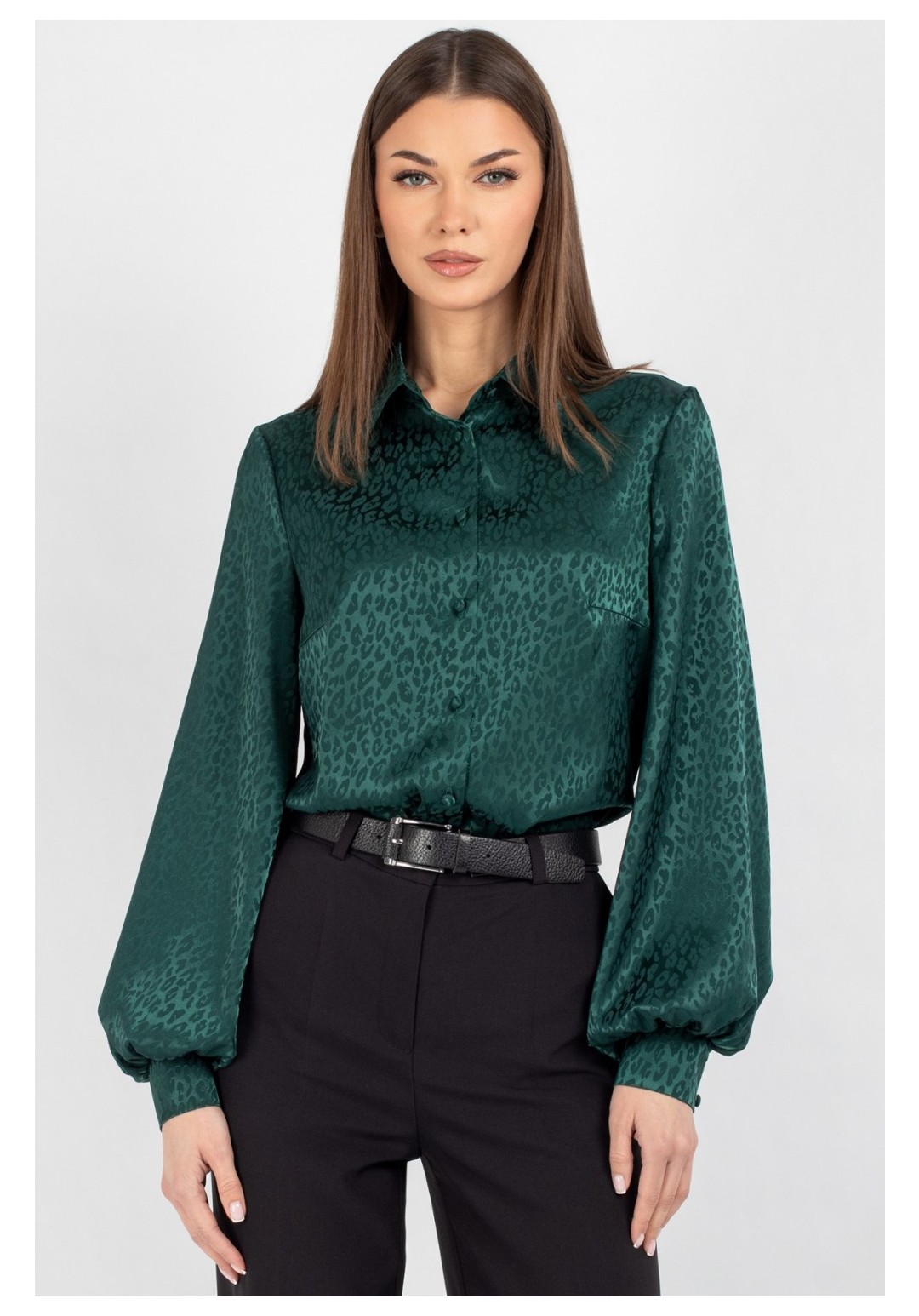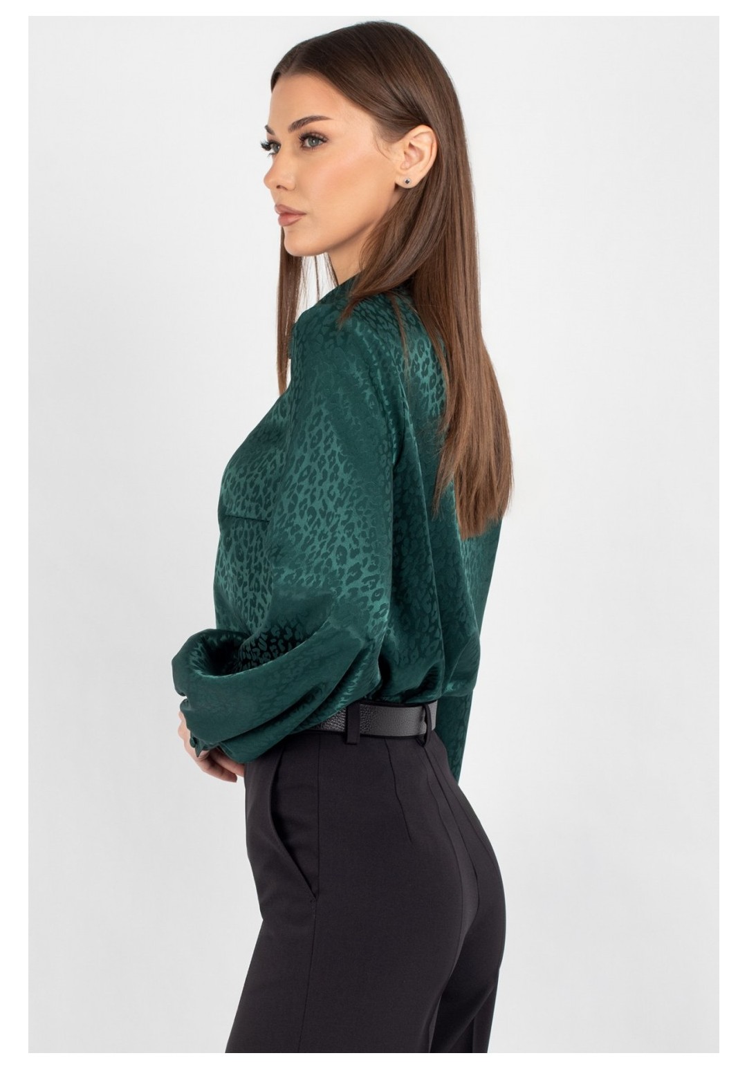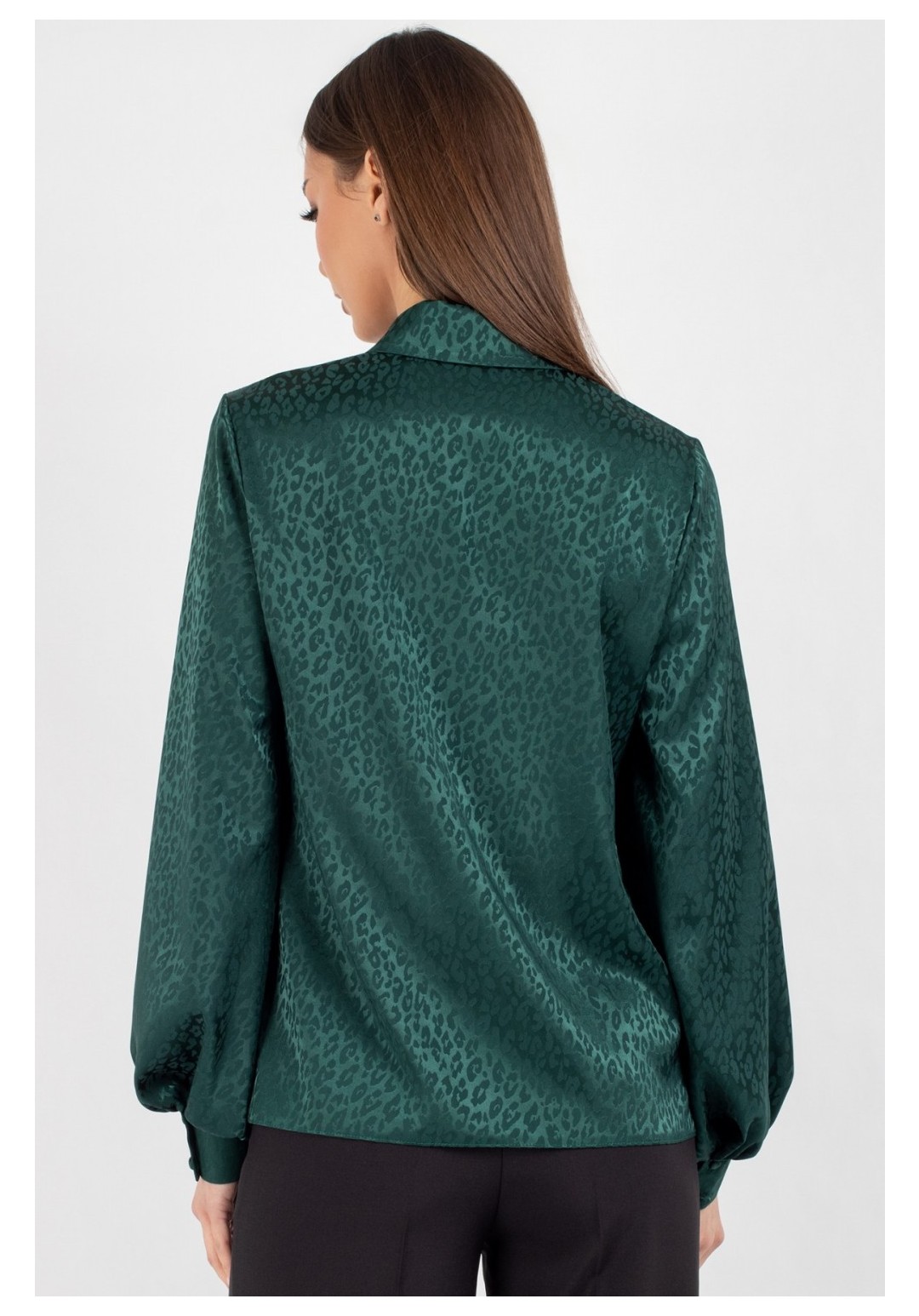Женская блузка полуприлегающего силуэта — идеальный выбор для создания элегантных образов на каждый день. Эта модель сочетает в себе строгость классического кроя и женственность линий. Стильная и универсальная блуза, которая одинаково хорошо подходит для офиса и на каждый день. Благодаря продуманным деталям она дарит комфорт при носке и безупречно сидит на фигуре. Особого внимания заслуживает цвет модели — глубокий и благородный изумруд. Этот насыщенный зеленый оттенок освежает образ, добавляет ему глубины и прекрасно сочетается как с базовыми брюками и юбками, так и с любимыми джинсами. Крой блузки полуприлегающий, что позволяет ей мягко облегать фигуру, не стесняя движений. Нагрудные вытачки на передней части обеспечивают идеальную посадку, визуально подчеркивая линию талии. Спинка цельнокроеная, выполнена без единого шва. Центральная бортовая застежка на 7 элегантных пуговиц выполняет не только функциональную, но и декоративную роль, добавляя модели изысканности. Классический воротник рубашечного типа с отрезной стойкой придает блузке официальный шарм и строгость. Рукава втачные, заканчиваются аккуратными манжетами с фиксацией на 2 пуговицы, что обеспечивает завершенный вид образа. Благодаря своему элегантному фасону, эта нарядная и универсальная вещь создана для создания идеального силуэта: её можно носить под заправку для безупречного делового стиля или оставить навыпуск для более свободного и модного образа. Она станет безусловным фаворитом как для офиса, так и для торжественного события. Добавьте эту изумрудную ноту в свой гардероб, чтобы создать по-настоящему статусный образ! Уход: бережная стирка при температуре не выше 30°С.