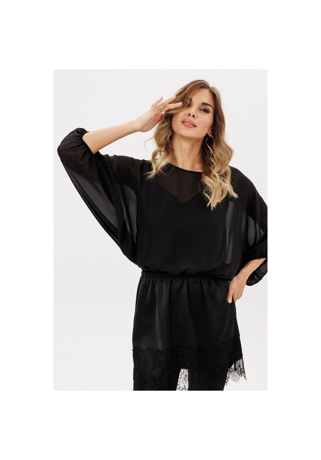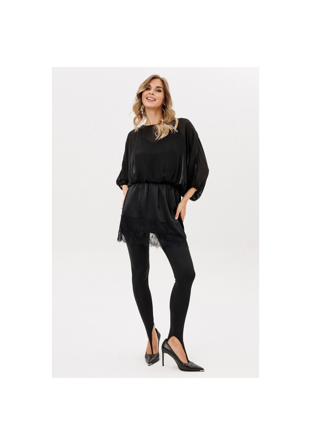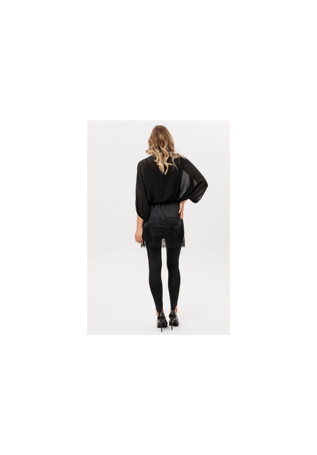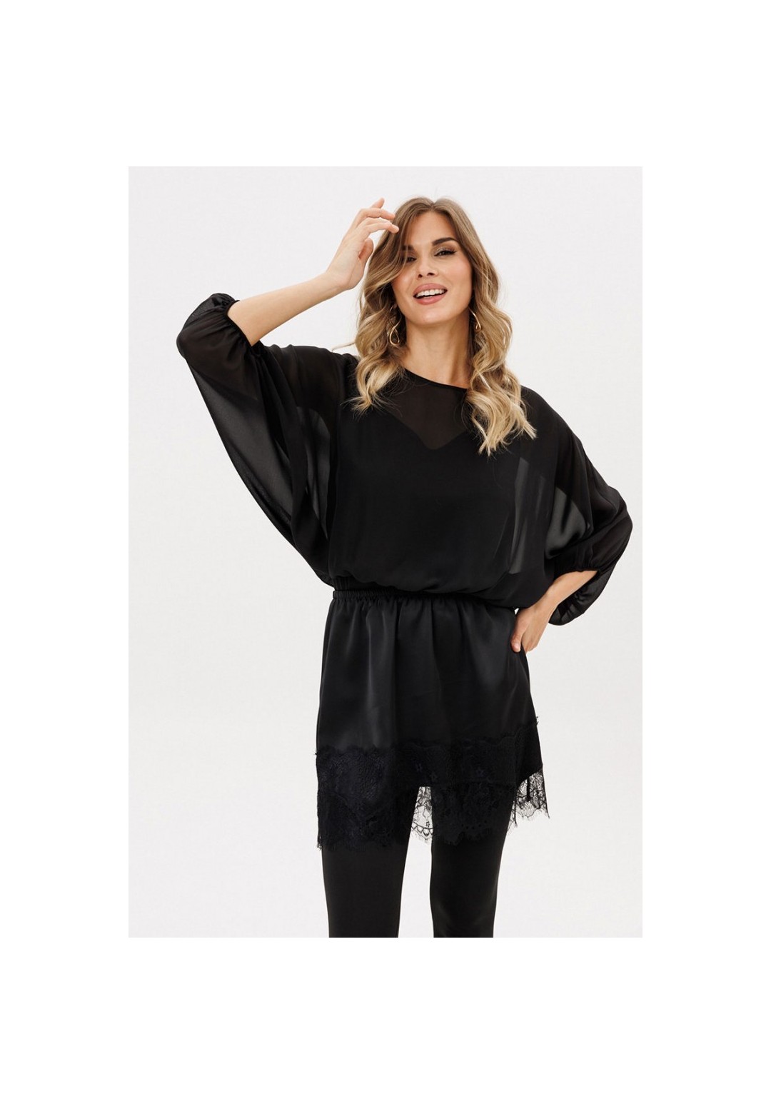 Юбка выполнена из плотного атласа. Юбка прямого силуэта длиной выше линии колена. Юбка на поясе с эластичной тесьмой. Низ фигурной формы, декорирован тесьмой-кружевом.