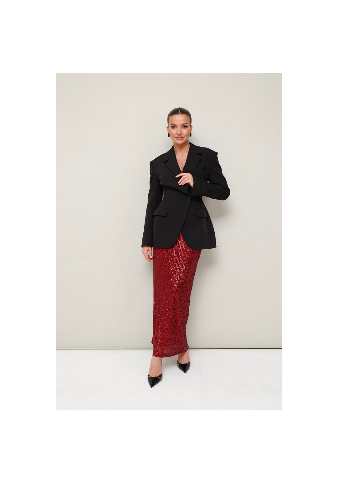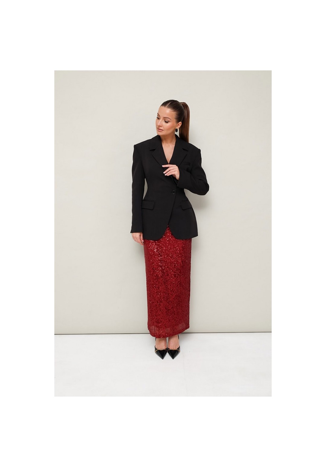 Юбка, декорированная пайетками, на подкладке. Пояс на резинке, хорошо тянется. Юбка прямого полуприлегающего силуэта.