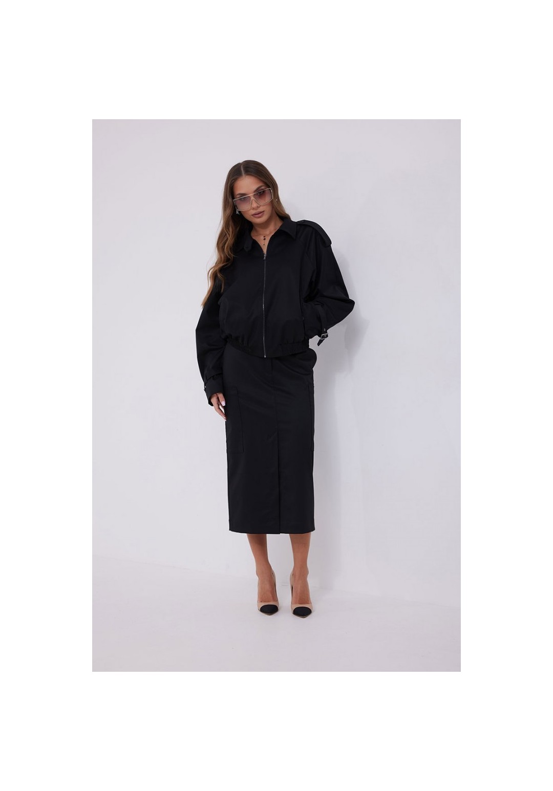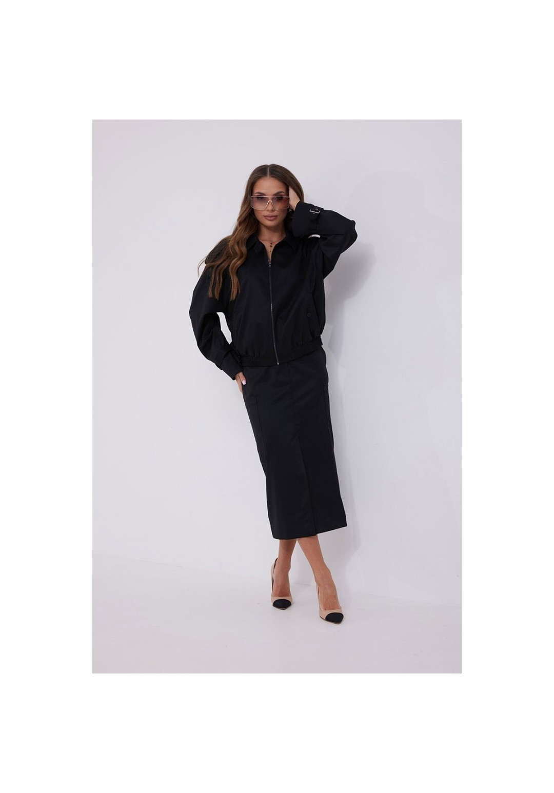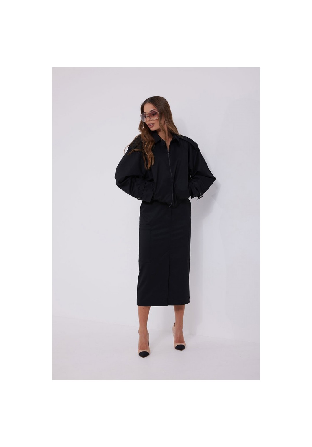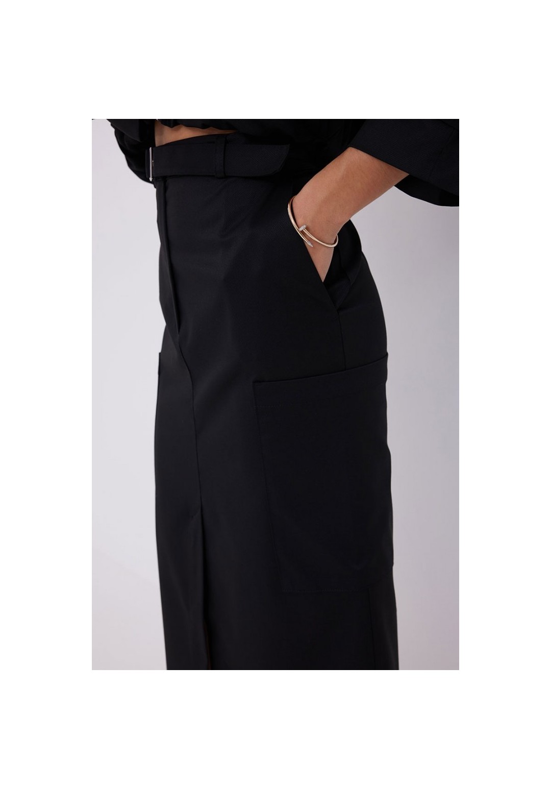 Юбка прямая из костюмной ткани. Длина миди. Верх на поясе со шлевками. Застежка по переду на молнию и кнопку на поясе. В комплекте съемный ремень. В боковых швах карманы. По низу переда юбки шлица. На боковых швах накладные карманы. 44 р-р: ОТ - 79 см., ОБ - 95 см. 46 р-р: ОТ - 83 см., ОБ - 99 см. 48 р-р: ОТ - 87 см., ОБ - 103 см. 50 р-р: ОТ - 91 см., ОБ - 107 см. 52 р-р: ОТ - 95 см., ОБ - 111 см.